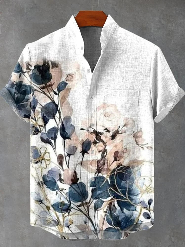 Men's Elegant Floral Art Print Short Sleeve Shirt