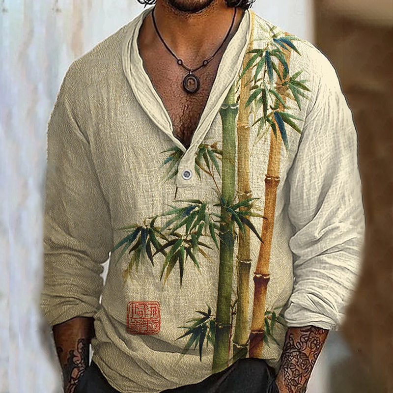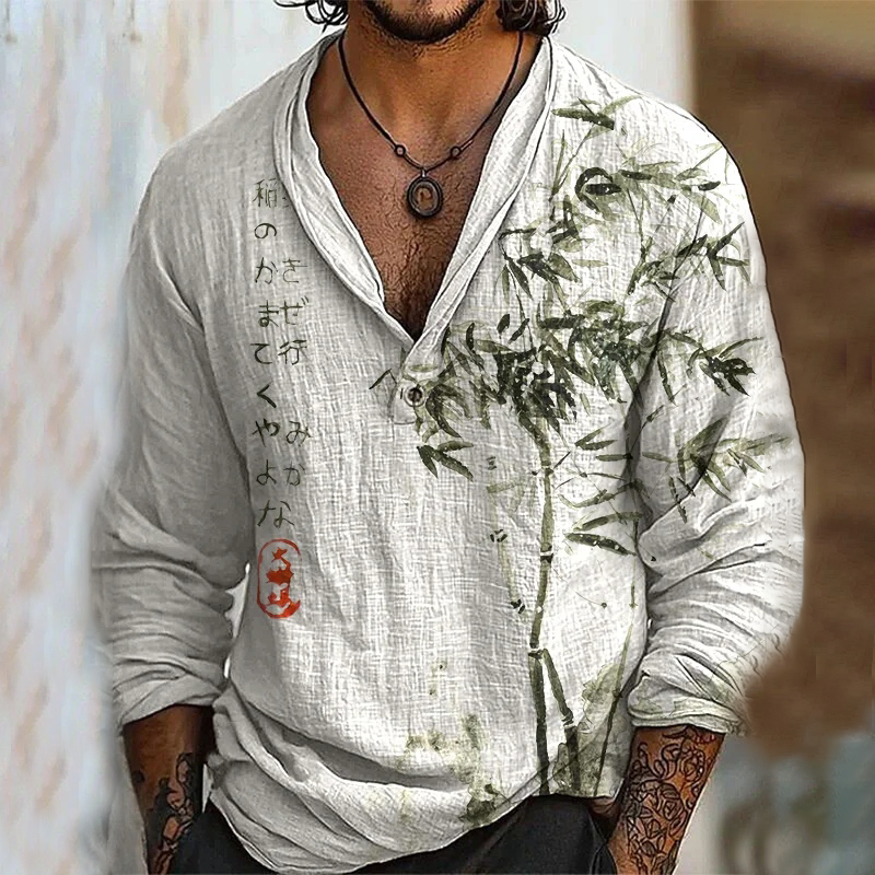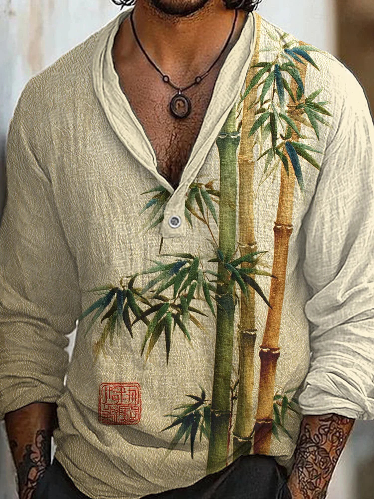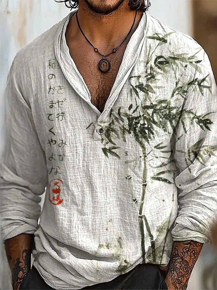 Men's Ink Bamboo Painting Print Long Sleeve Shirt