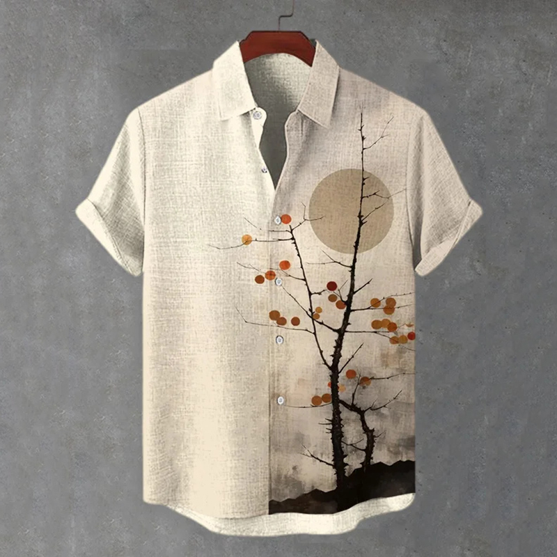 Men's Moon And Tree Zen Art Print Casual Shirt
