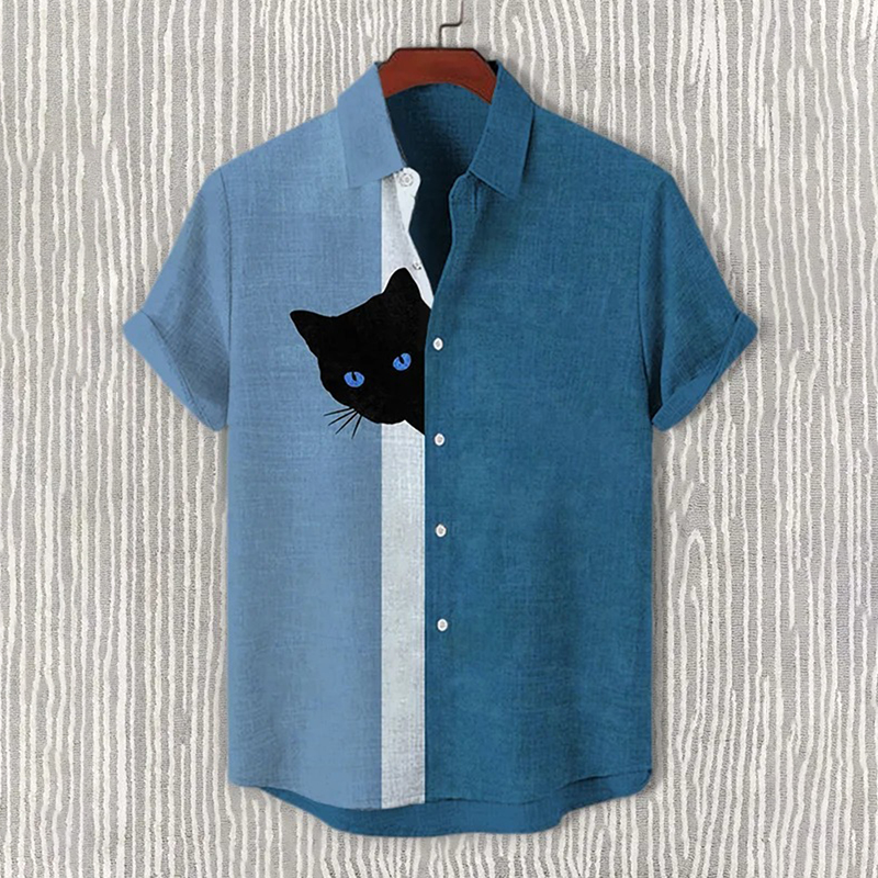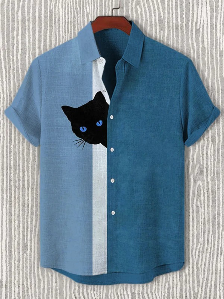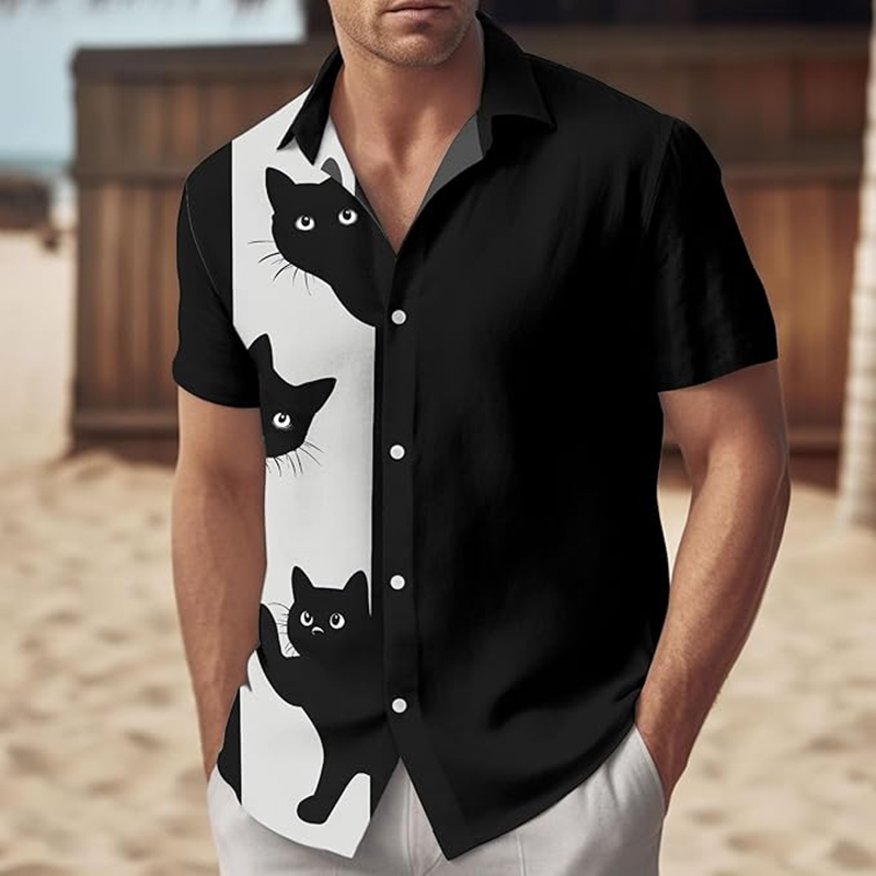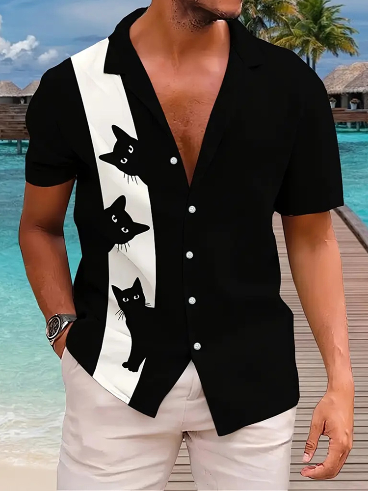 Men's Fun Hide And Seek Black Cat Print Print Casual Shirt