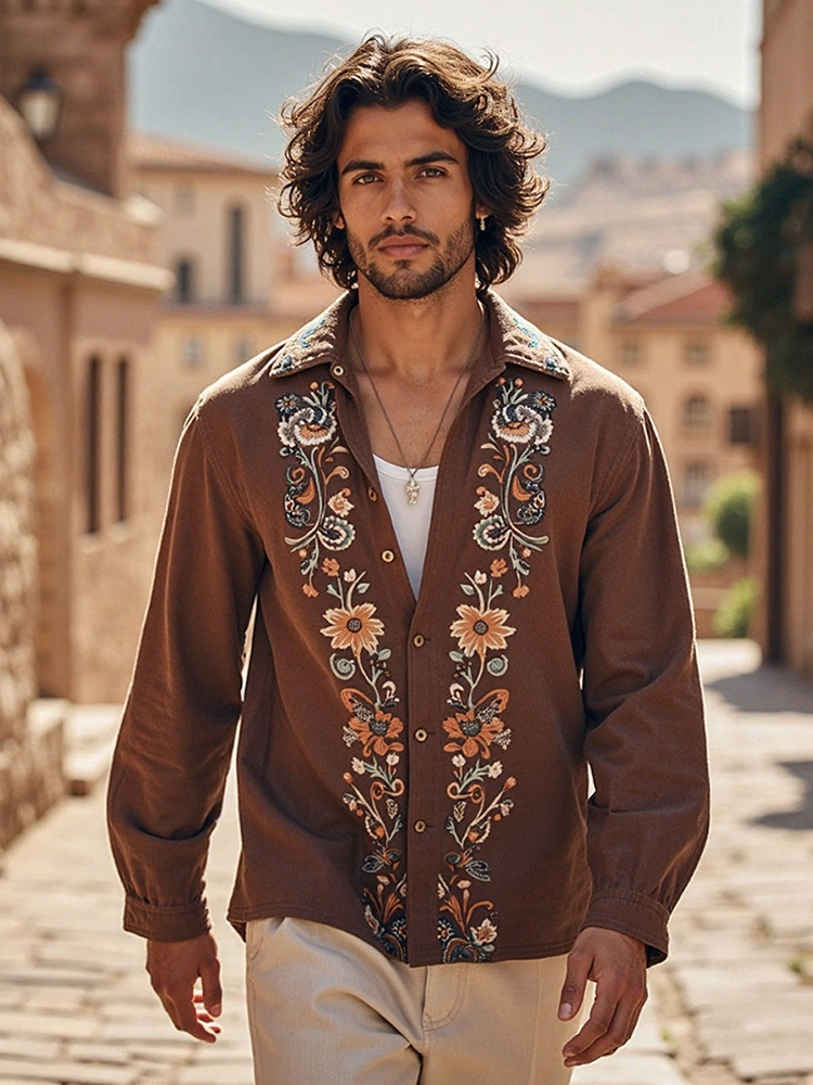 Men's Bohemian Floral Casual Resort Style Long-sleeved Shirt