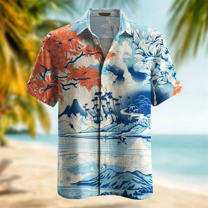 Men's Hawaii Seascape Japanese Art Beach Linen Shirt