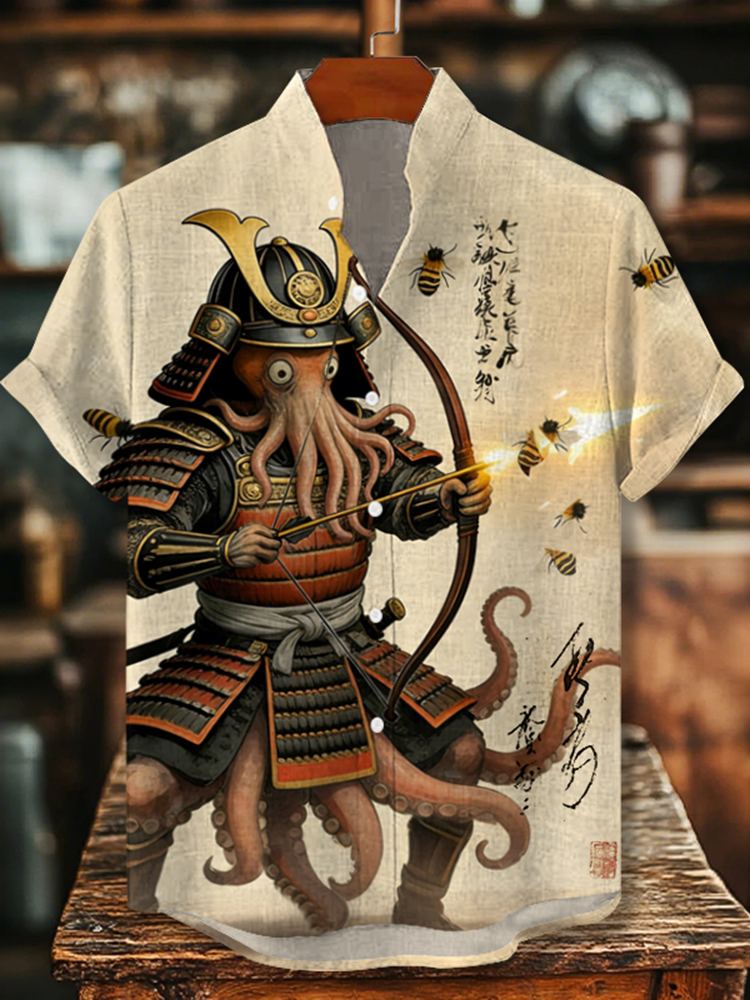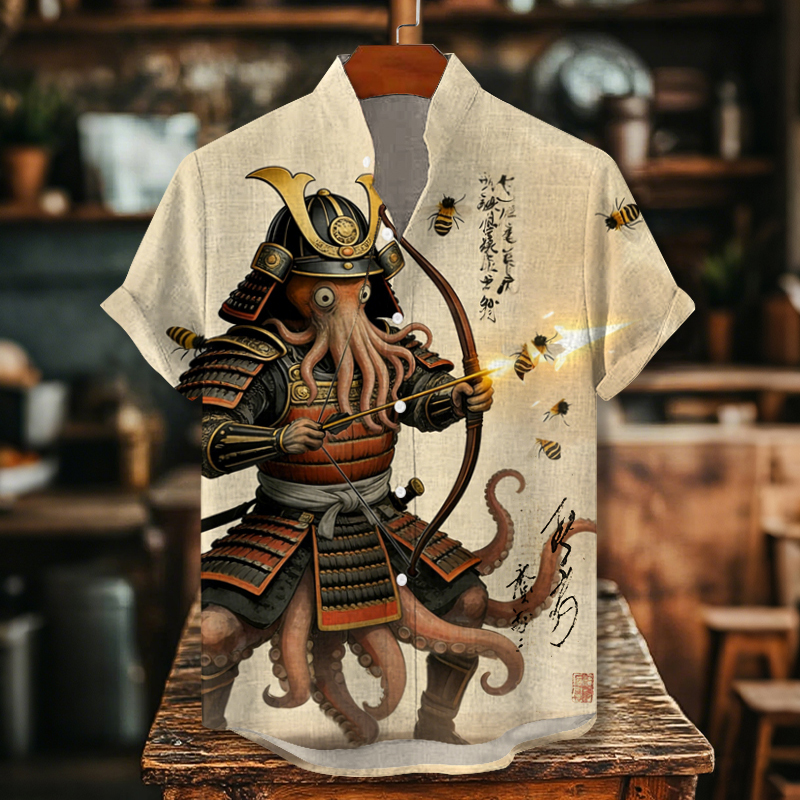Men's Octopus Samurai Japanese Kyudo Art Print Casual Shirt