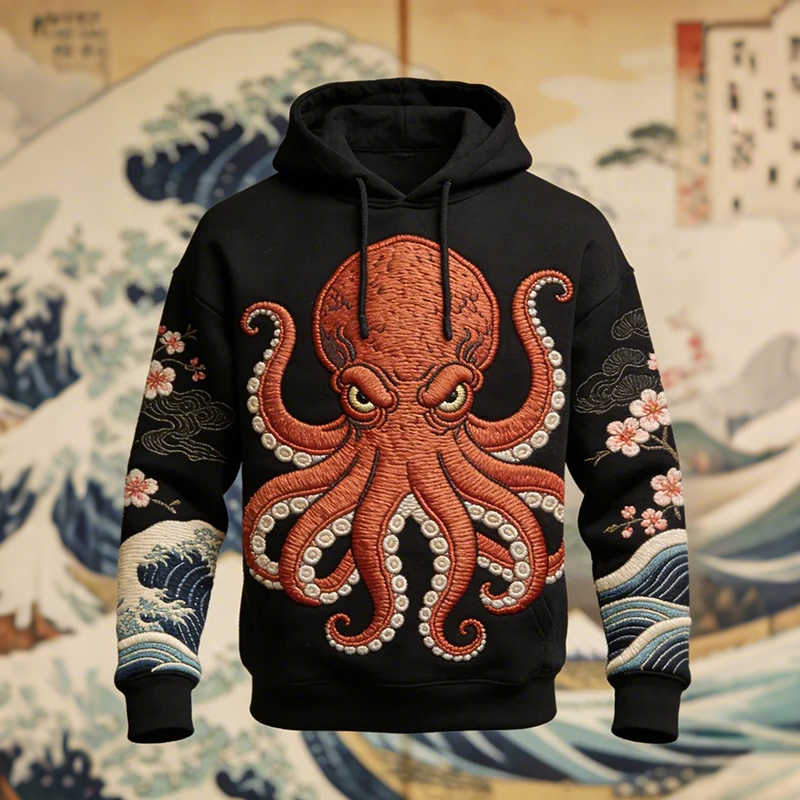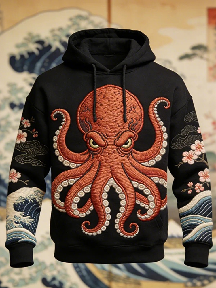 Men's Octopus Ocean Japanese Art Print Casual Hoodie