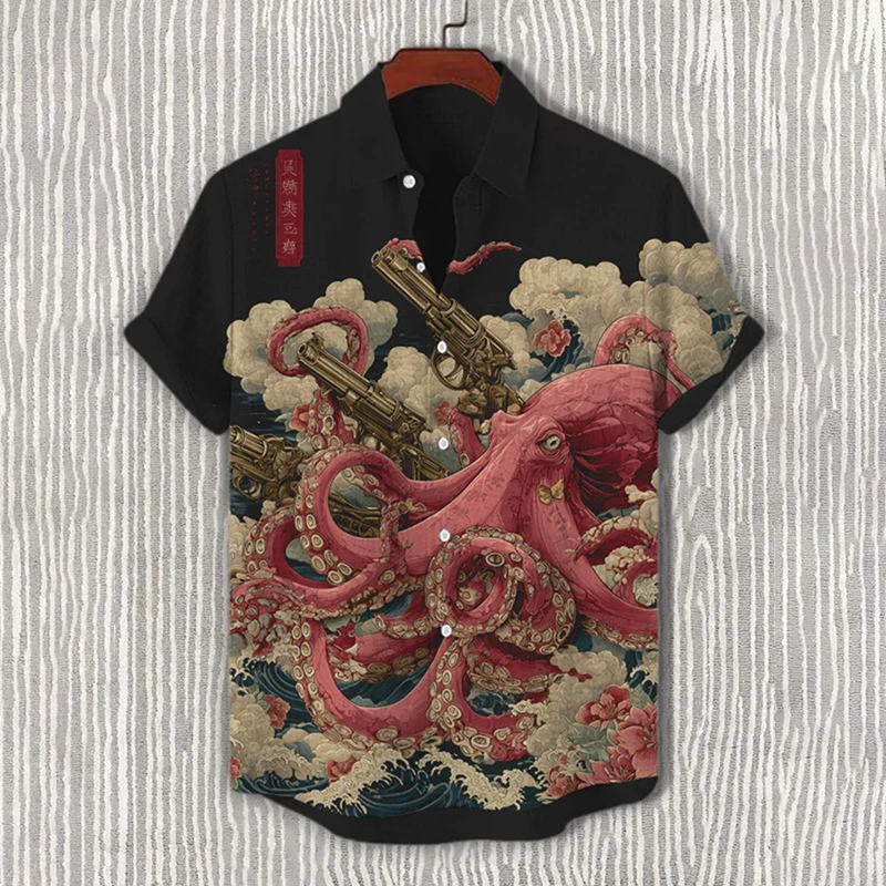 Men's Octopus Japanese Art Print Casual Shirt