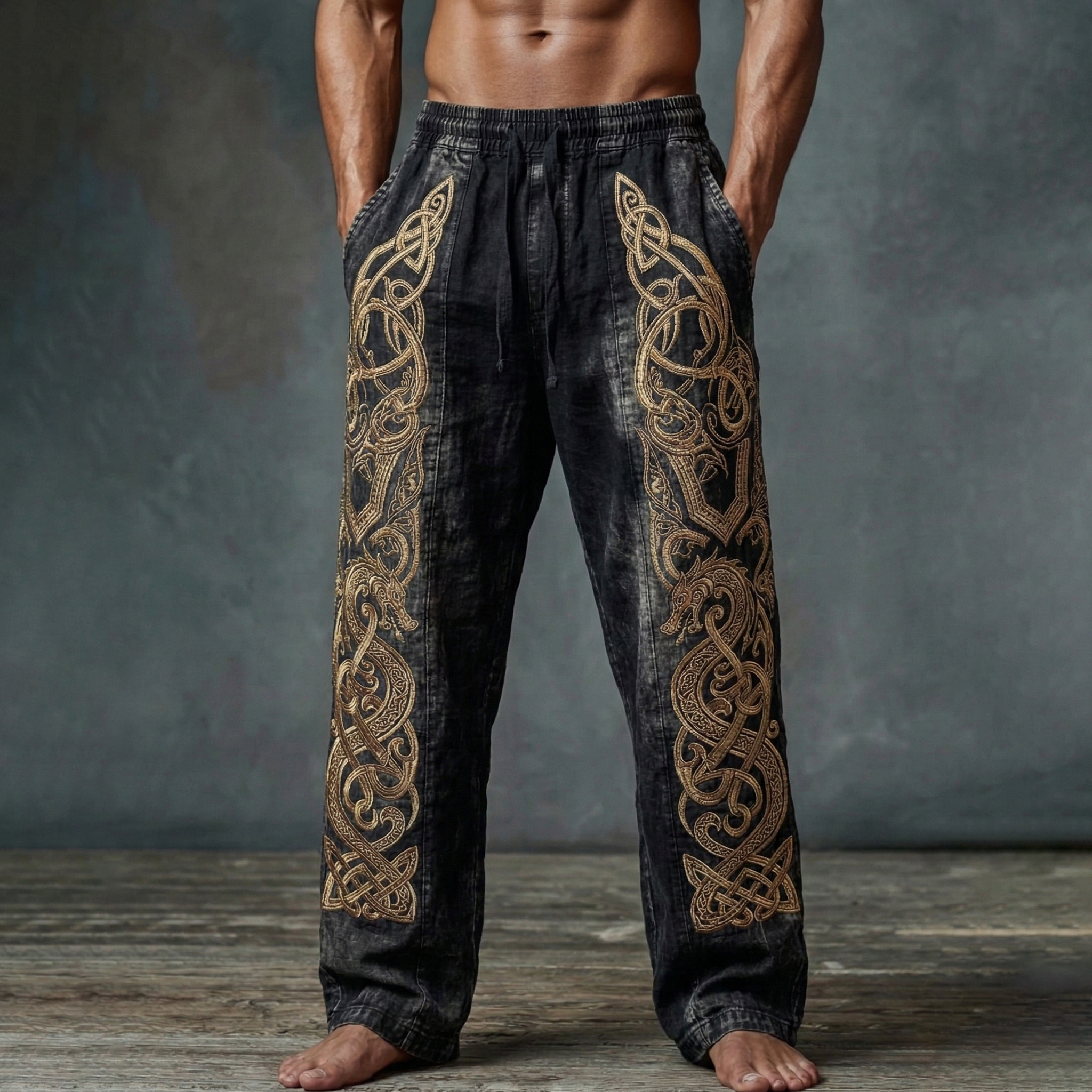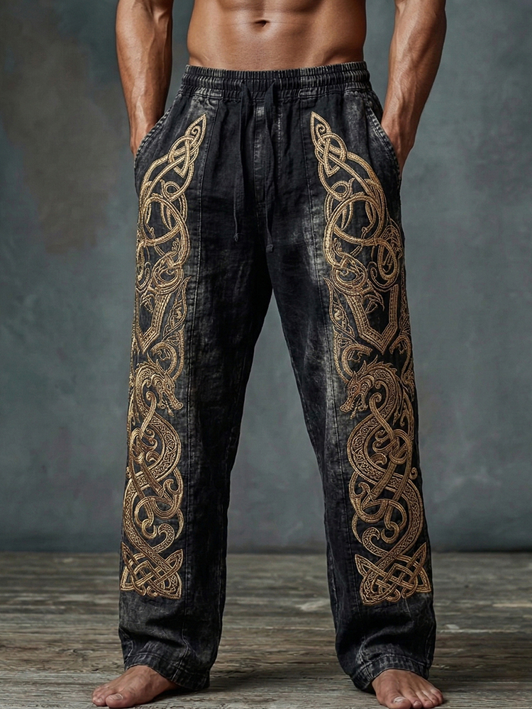 Men's Viking Dragon Celtic Knot Art Comfy Linen Trousers
