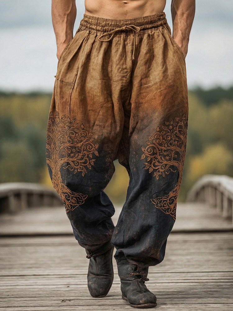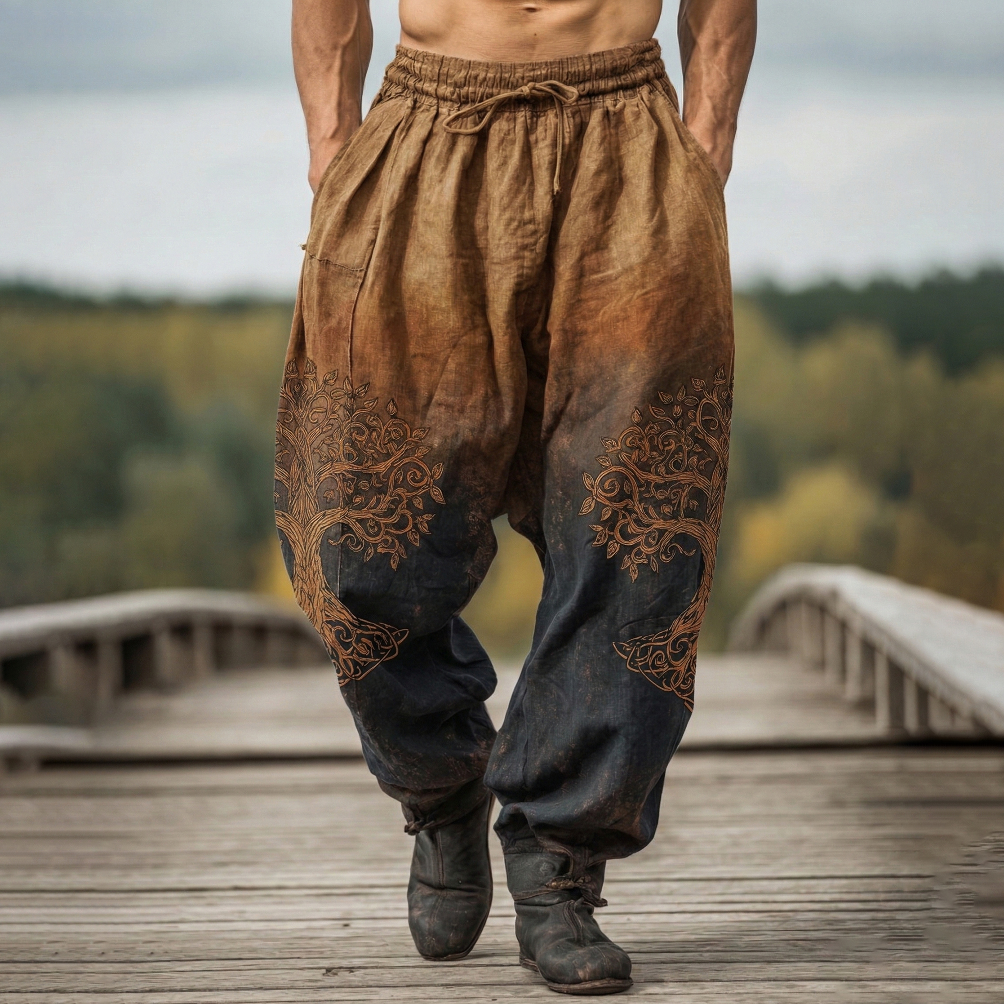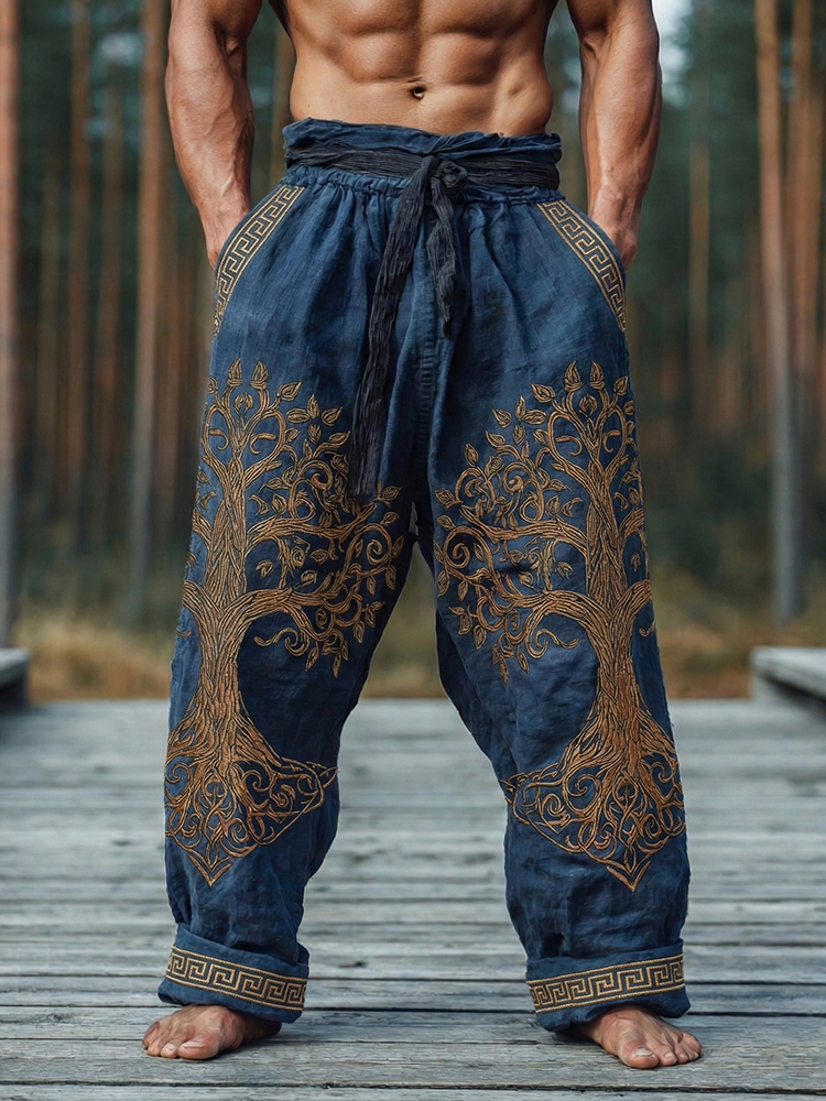 Men's Viking Tree Of Life Art Comfy Linen Trousers