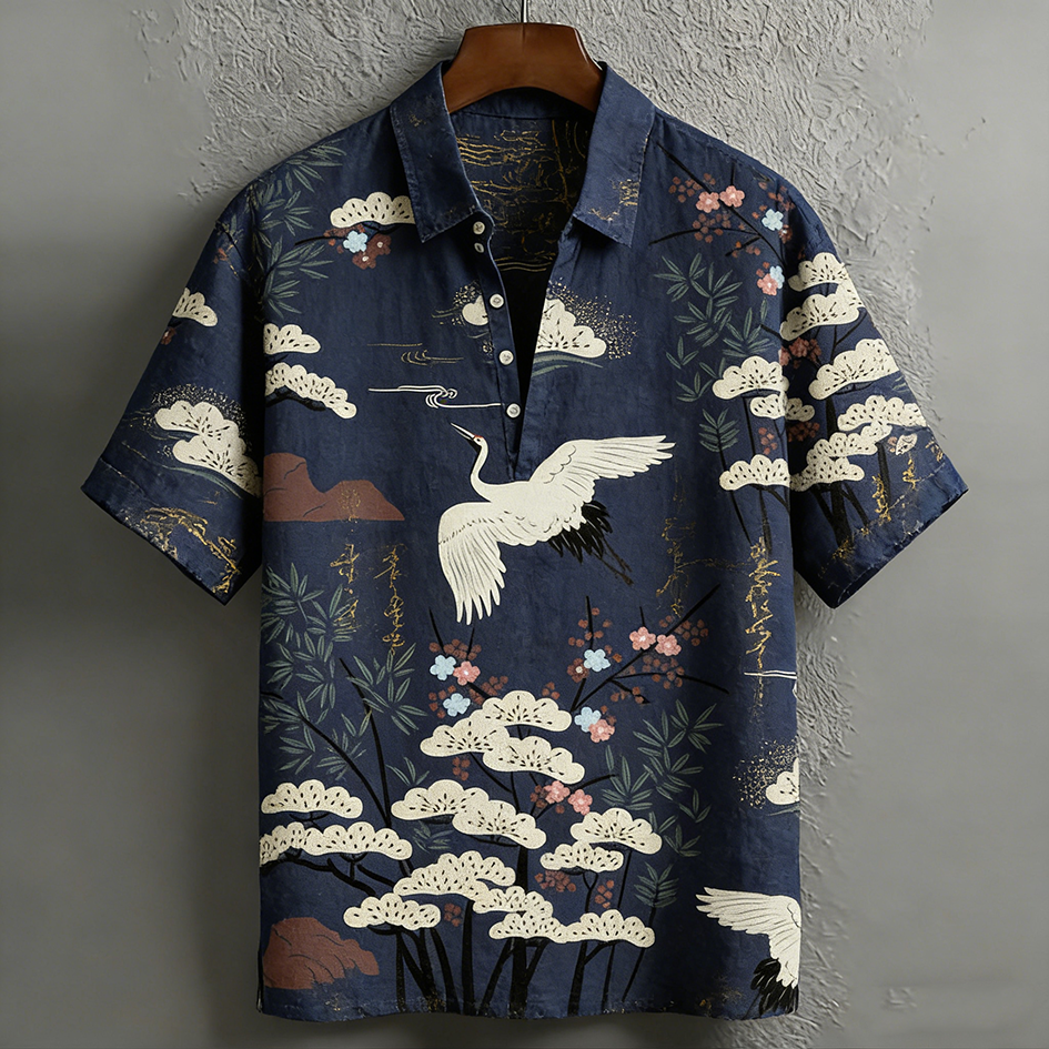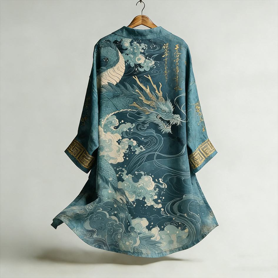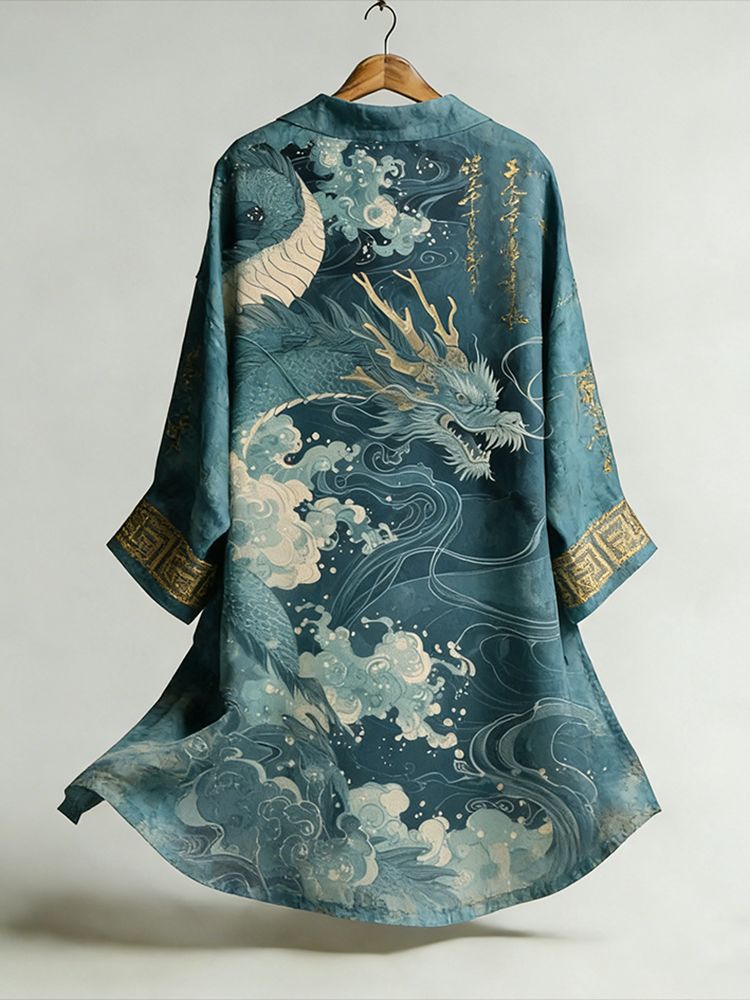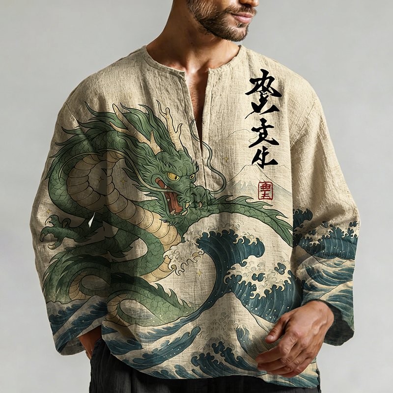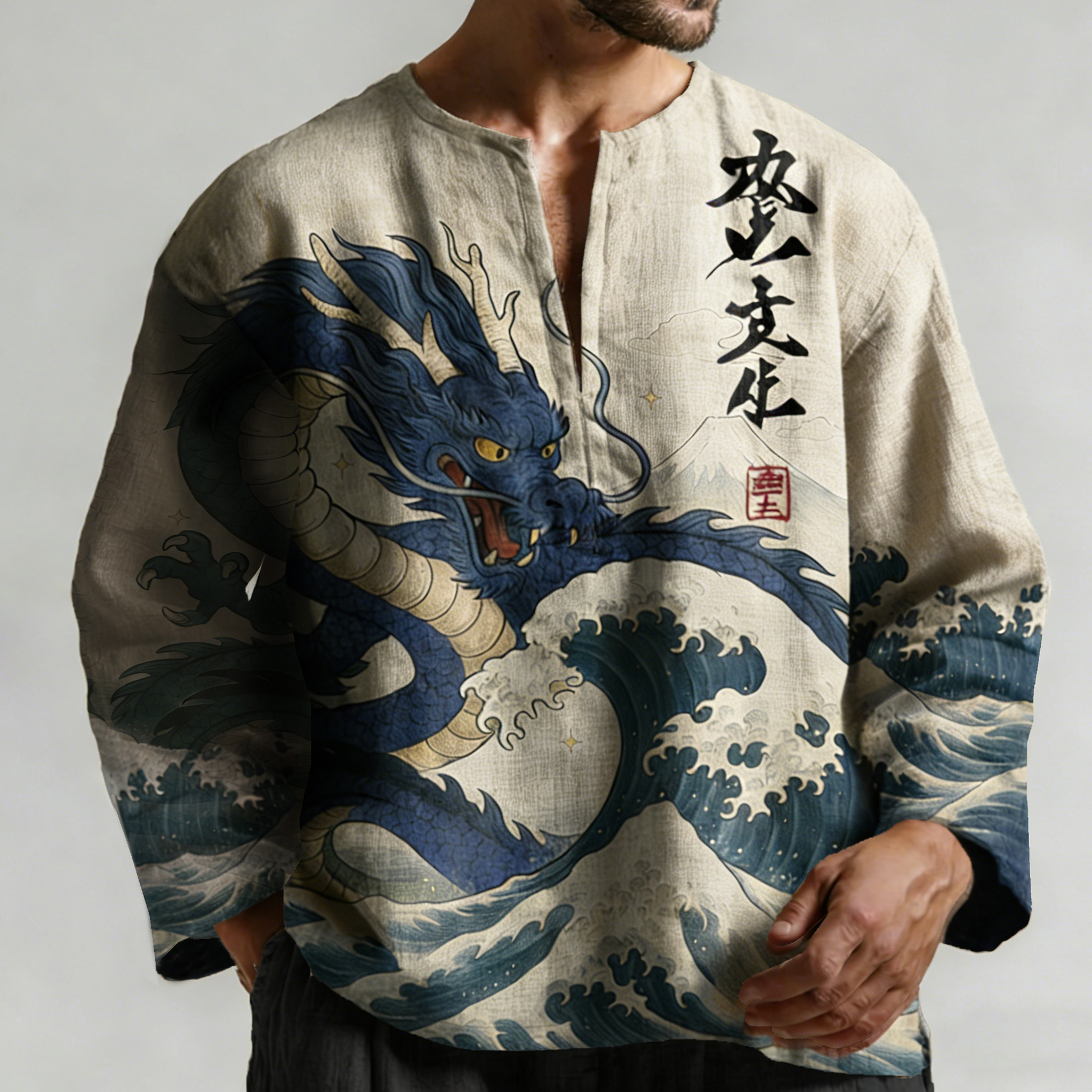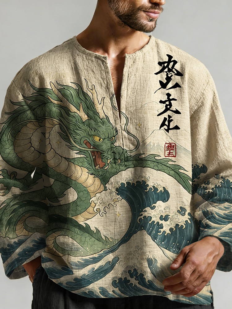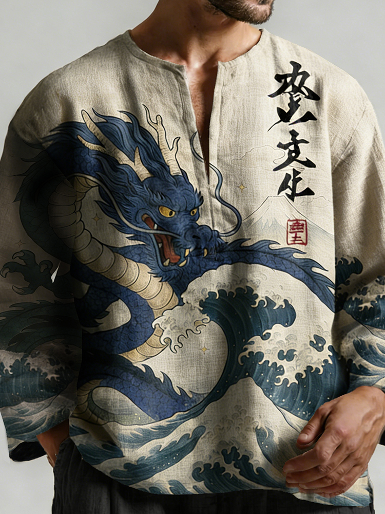 Men's Dragon Sea Waves Comfy Linen Shirt