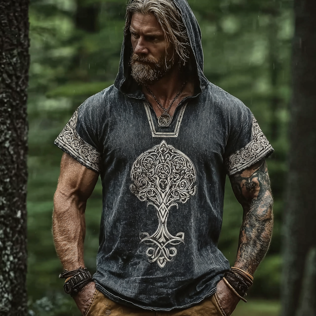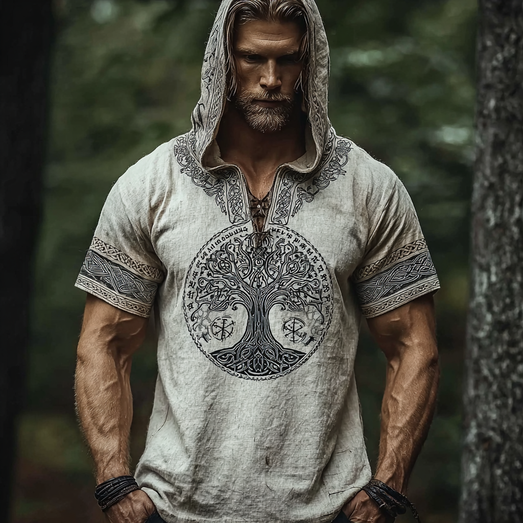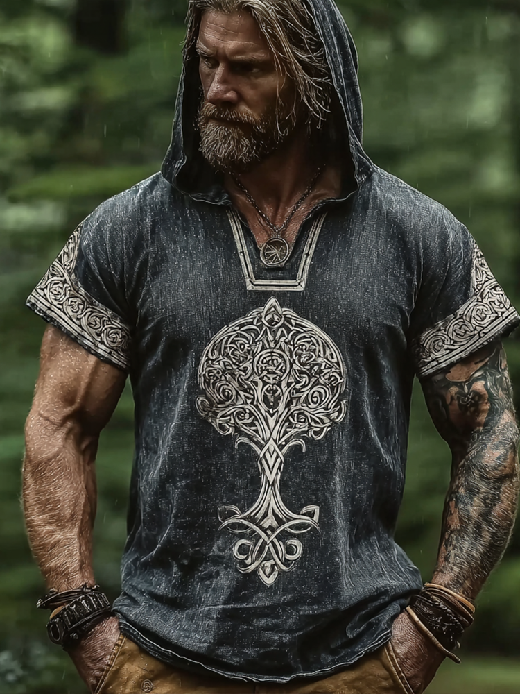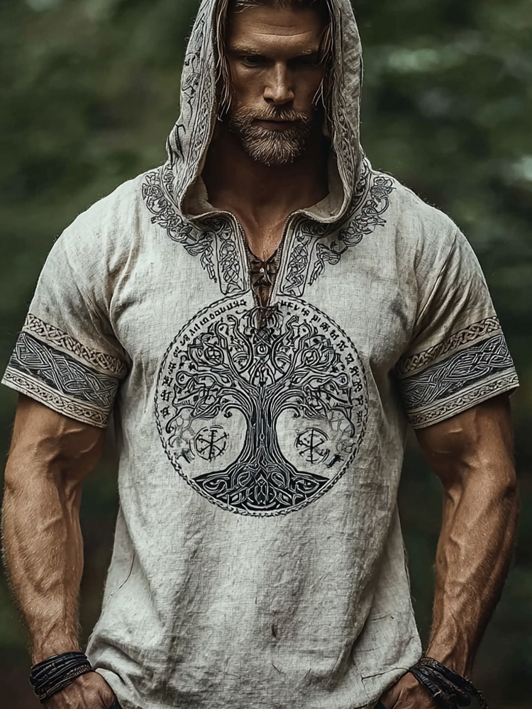Vintage Viking Style Celtic Knot Design Men's Linen Hooded Short-sleeve T-shirt
