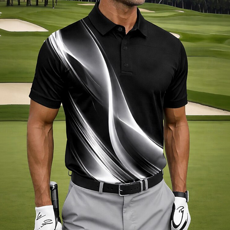 Men's Vintage Geometic Pattern Golf Sports Polo Shirt
