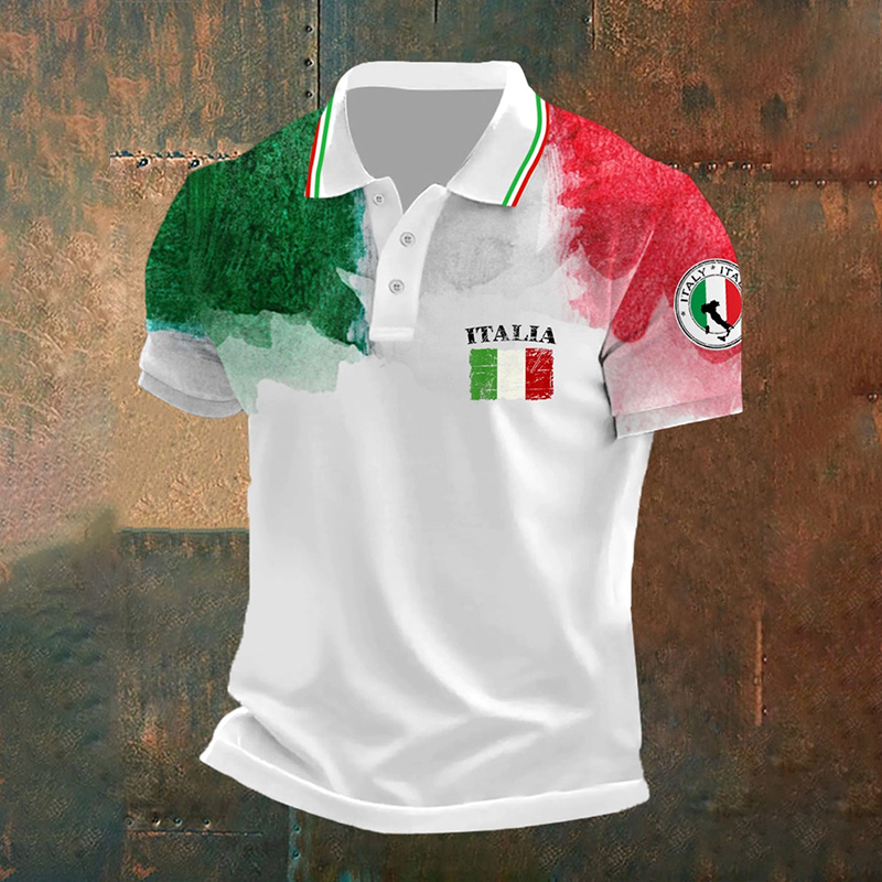 Men's Casual Italian Flag Element Prints Polo Shirt