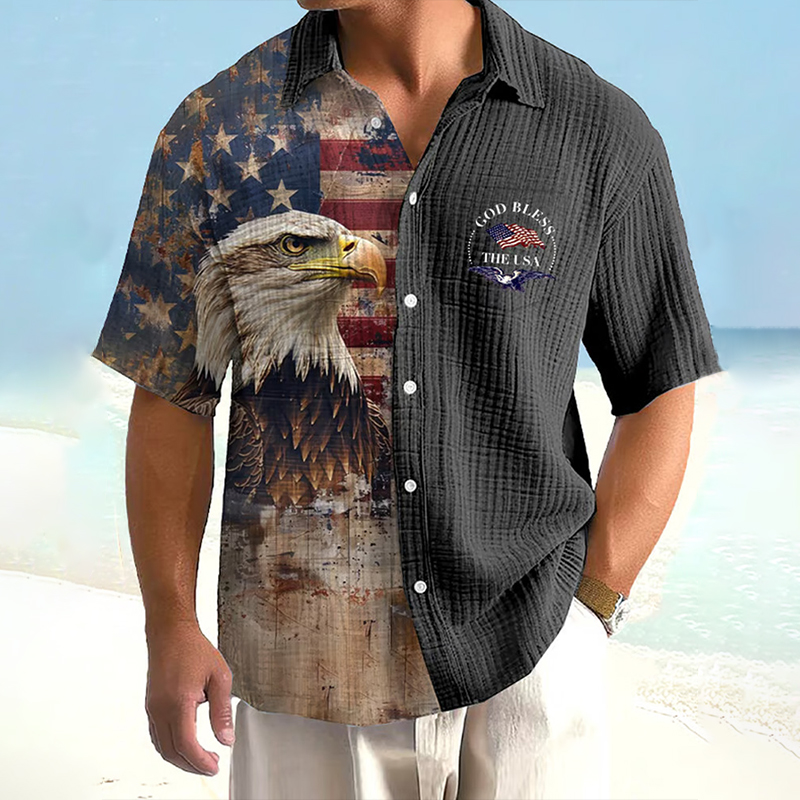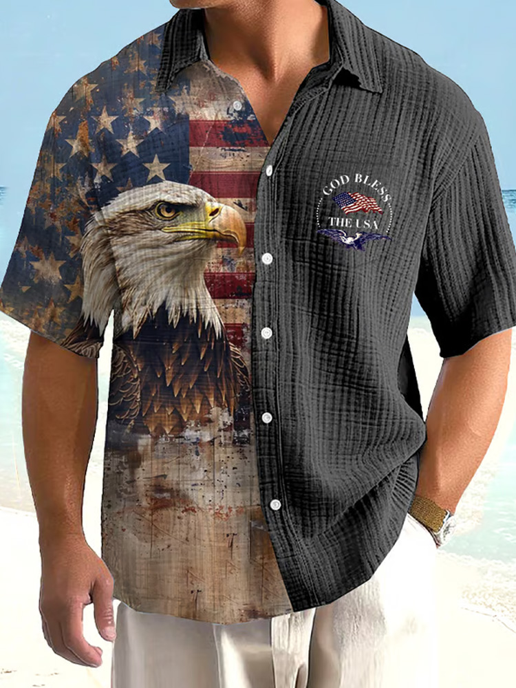 Men's Casual Independence Day Bubble Wrinkle Art Shirt