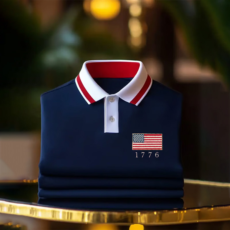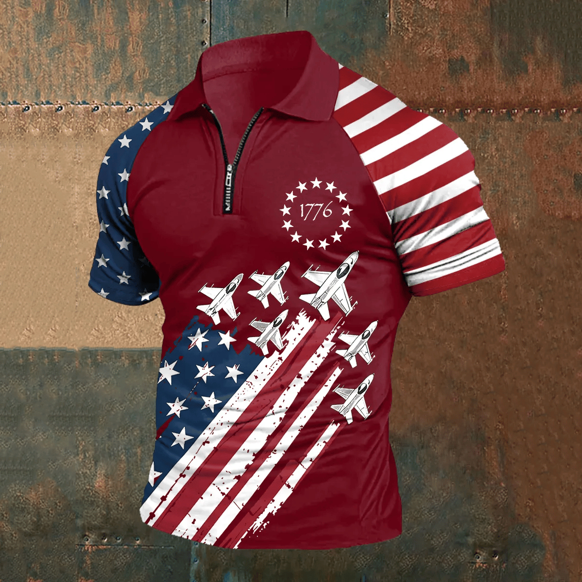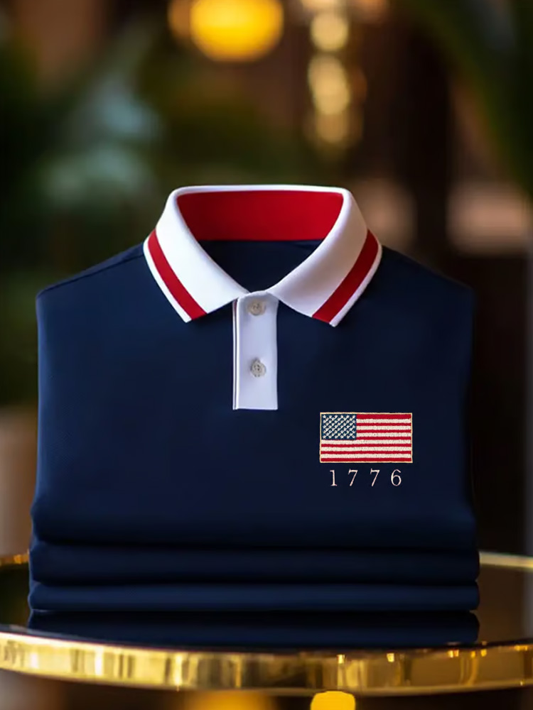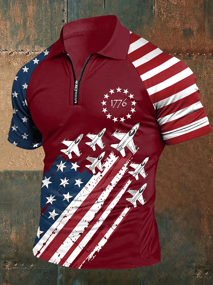 Men's Independence Day American Flag 1776 Zip-up Polo Shirt