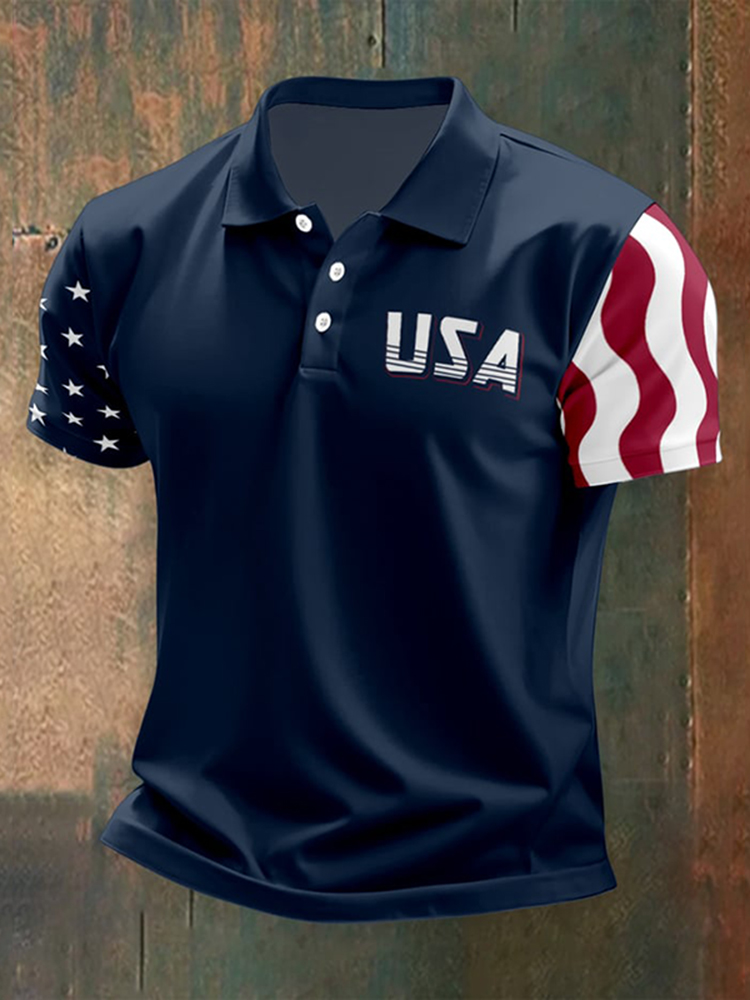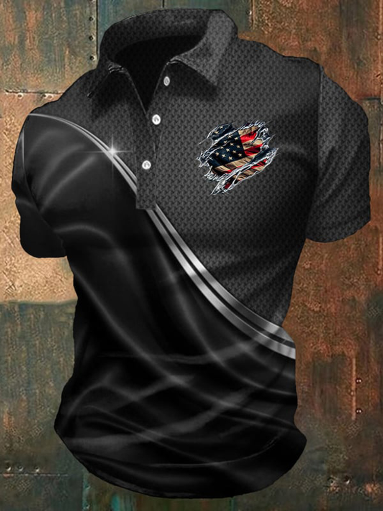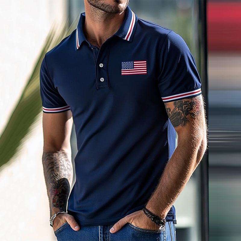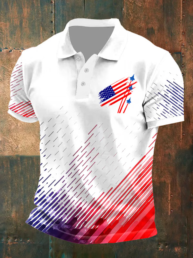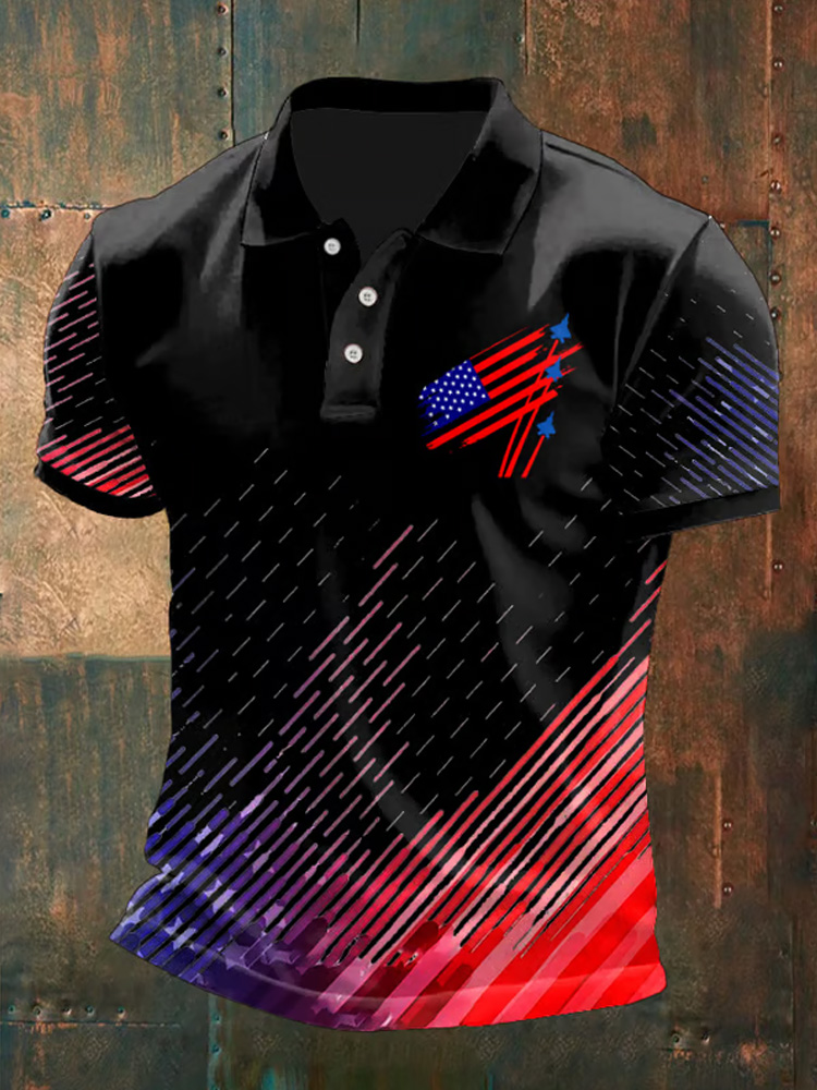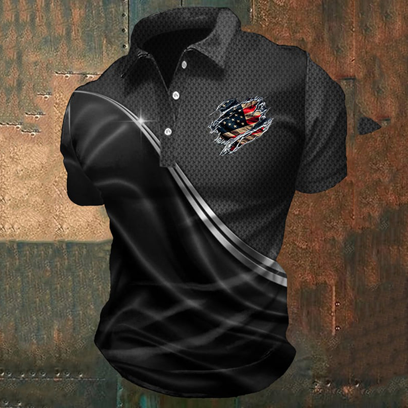 Men's Independence Day Flag Printed Holiday Casual Polo Shirt