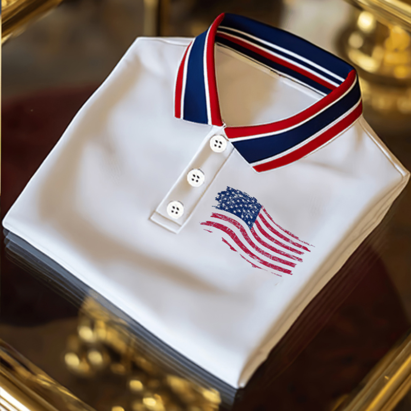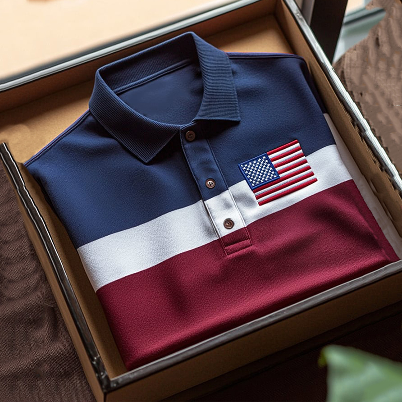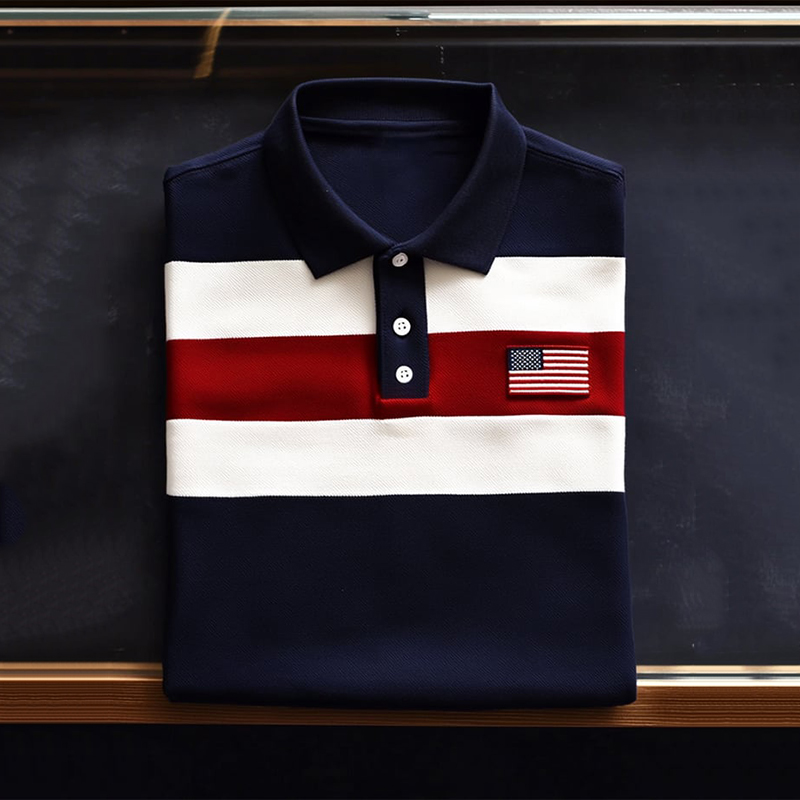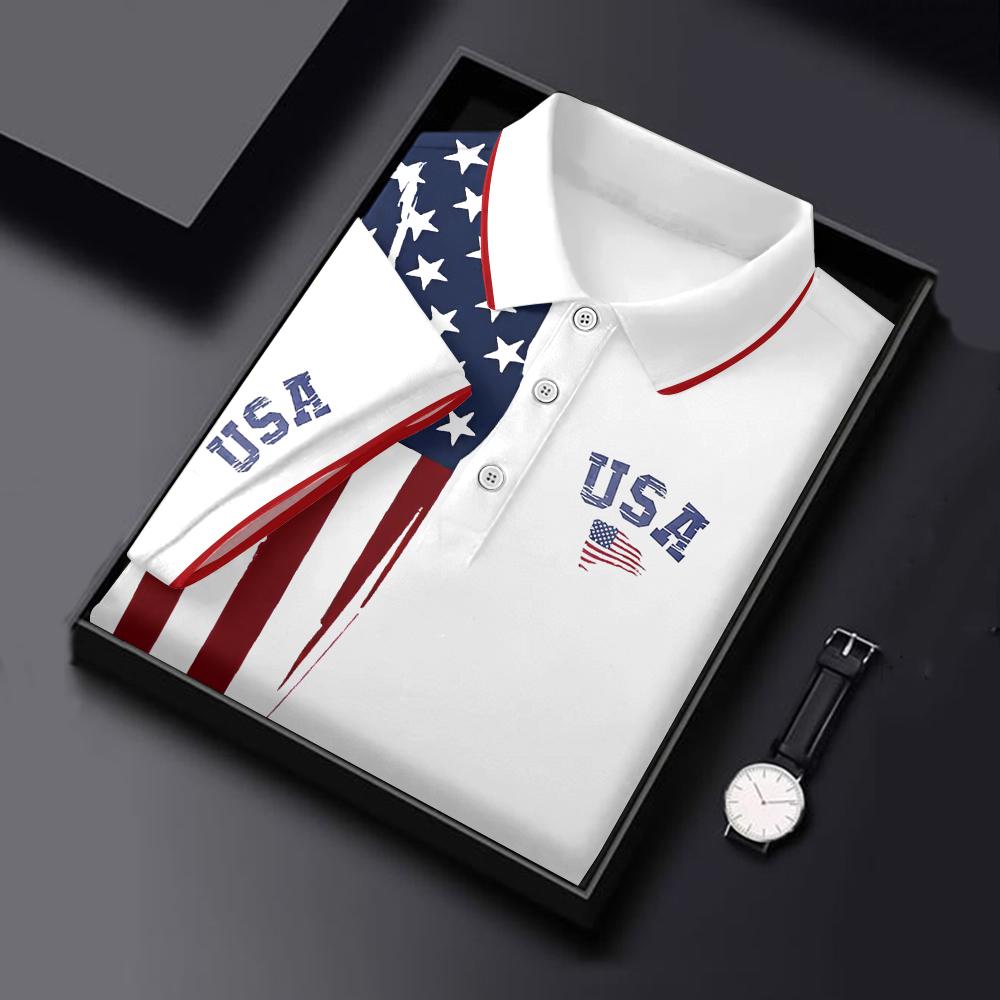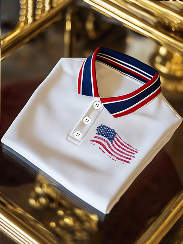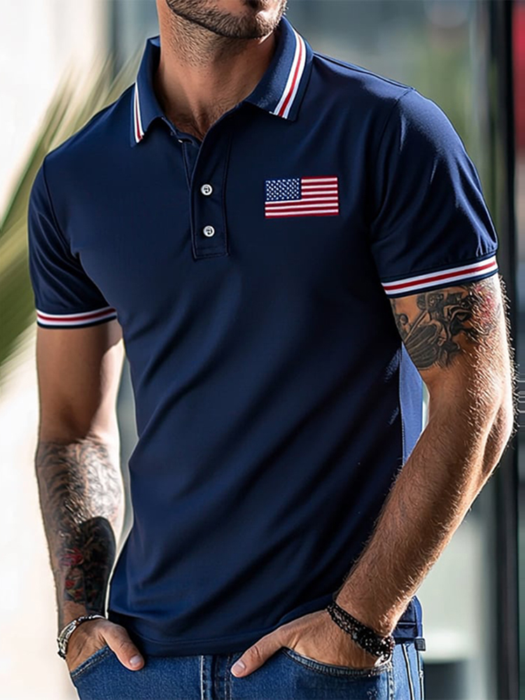 Men's Independence Day Flag Printed Holiday Casual Polo Shirt