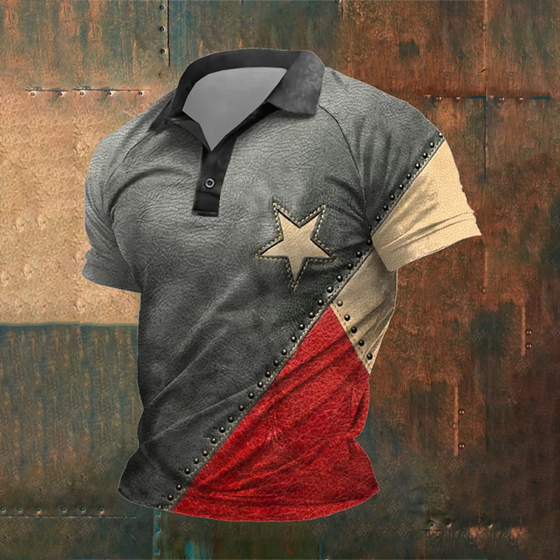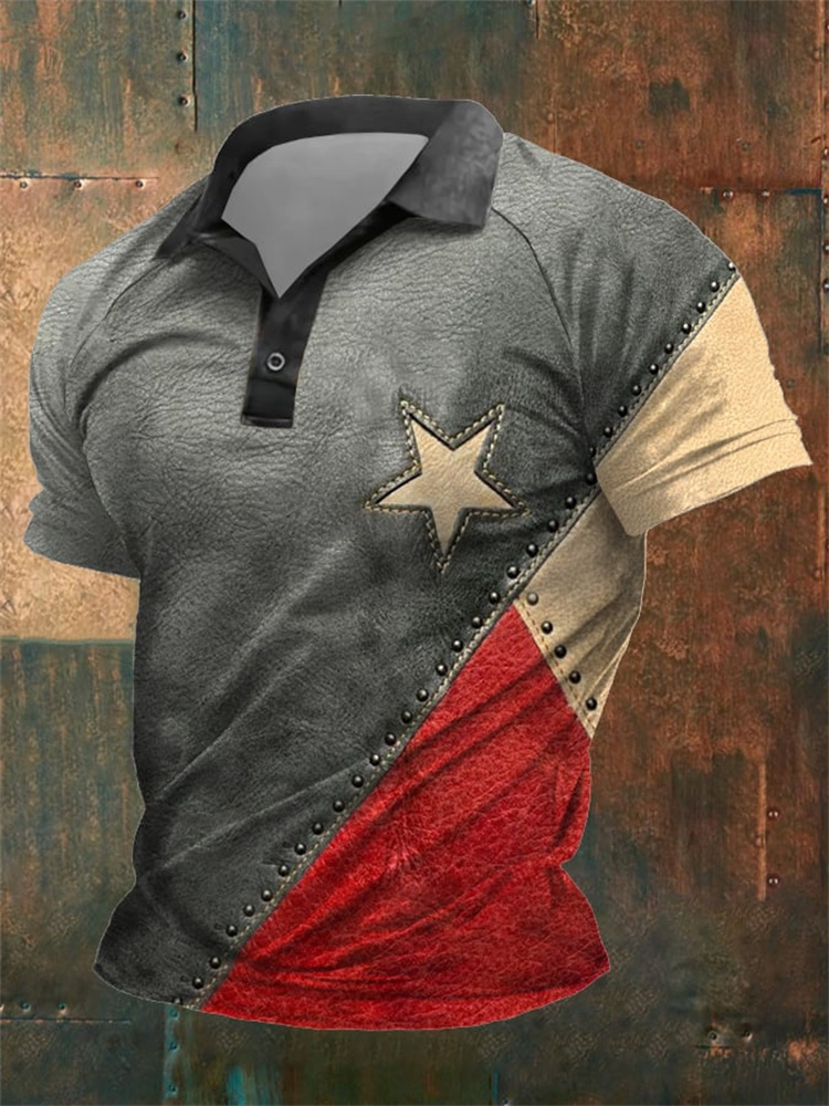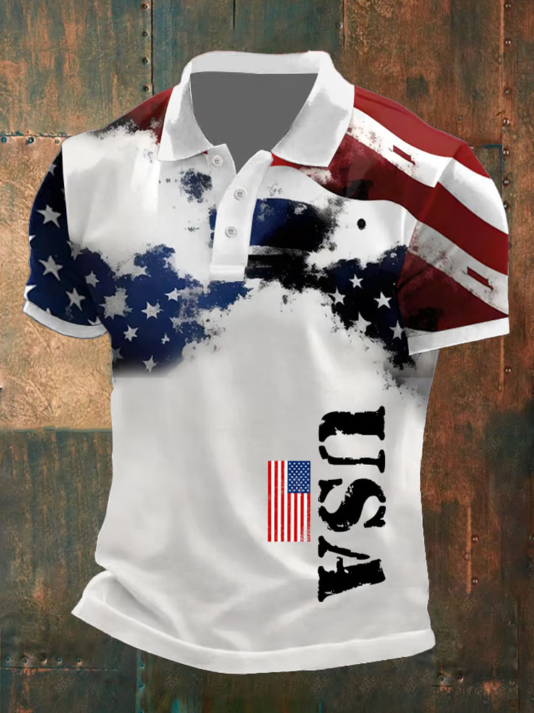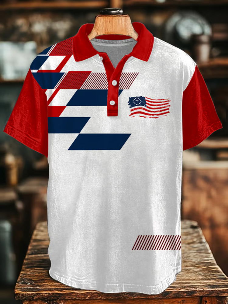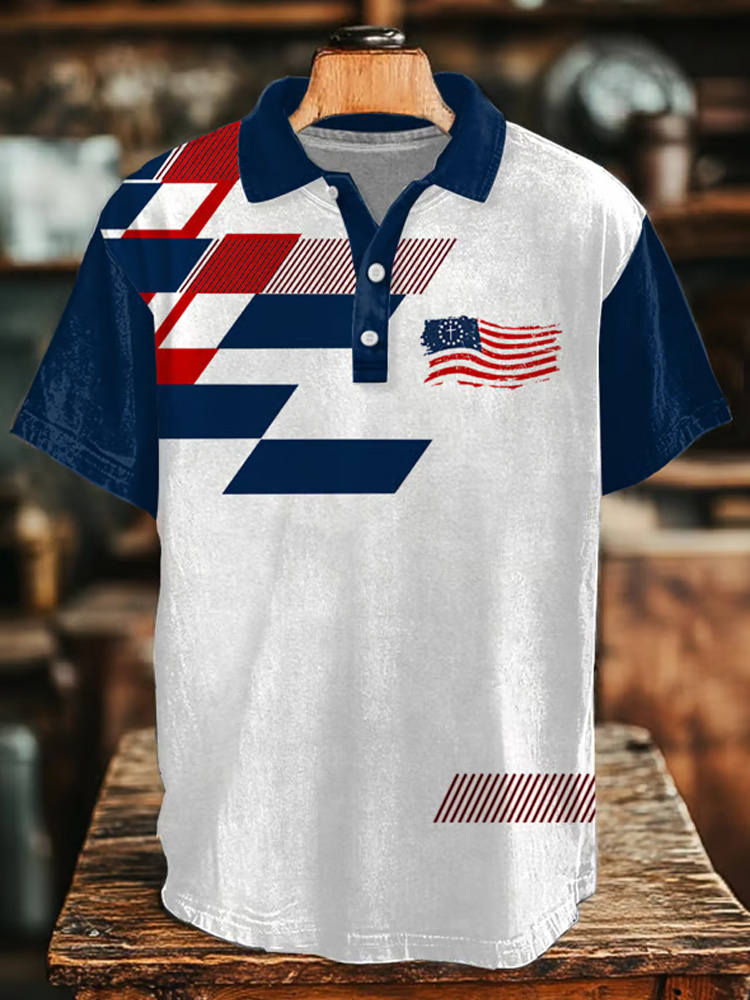 Men's Retro Independence Day Print Polo Shirt