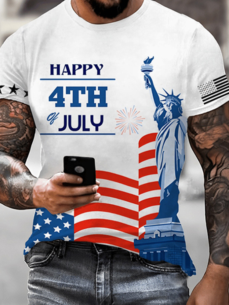 Men's Independence Day Statue Of Liberty Print Short Sleeve T-shirt