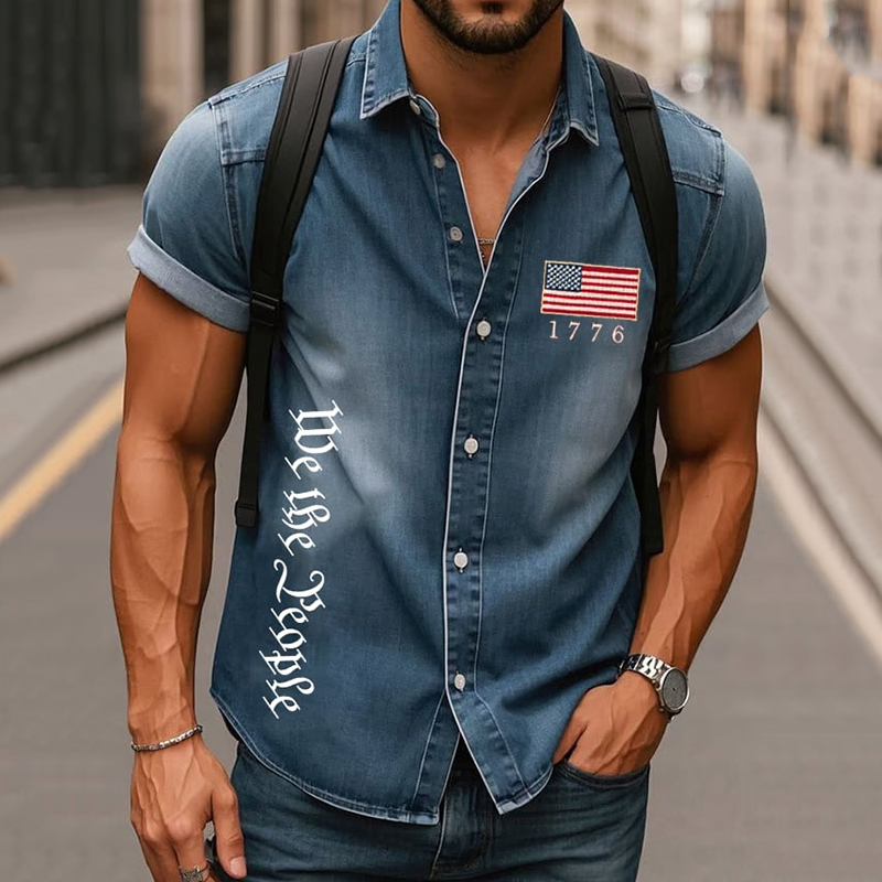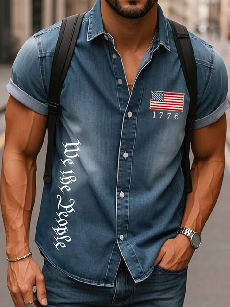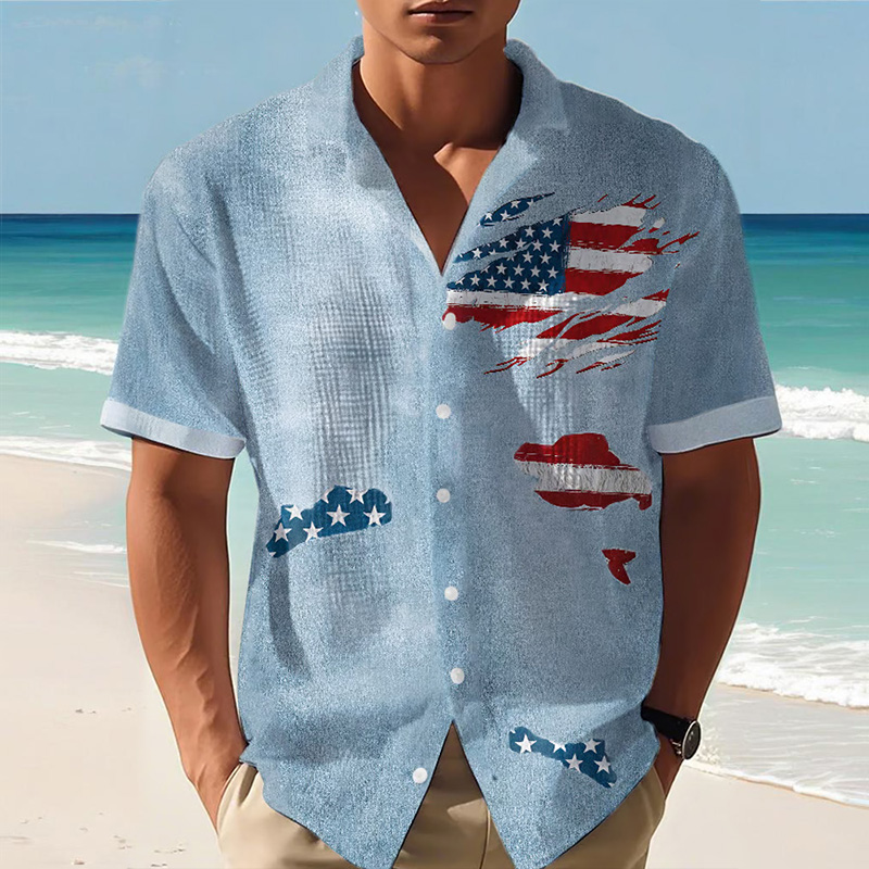Men's Independence Day Print Lapel Short Sleeve Shirt