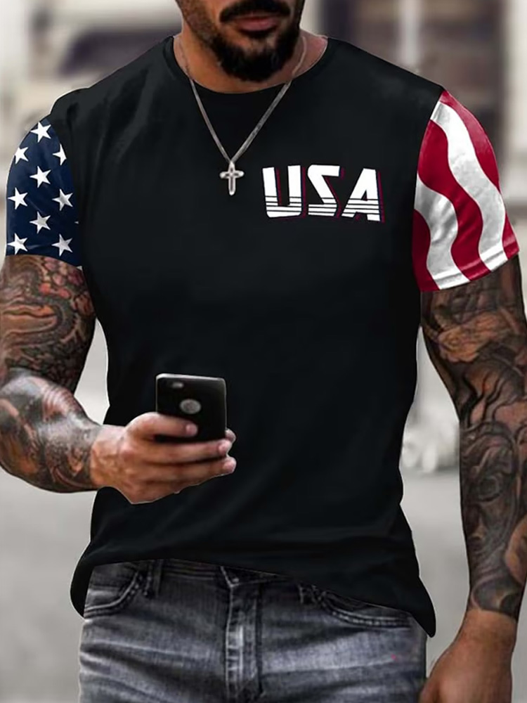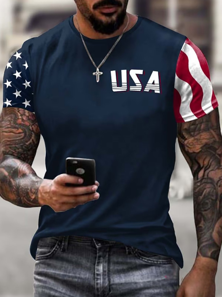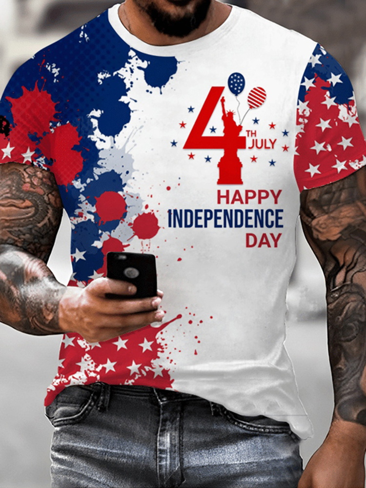 Men's Independence Day Print Crew Neck Short Sleeve T-shirt