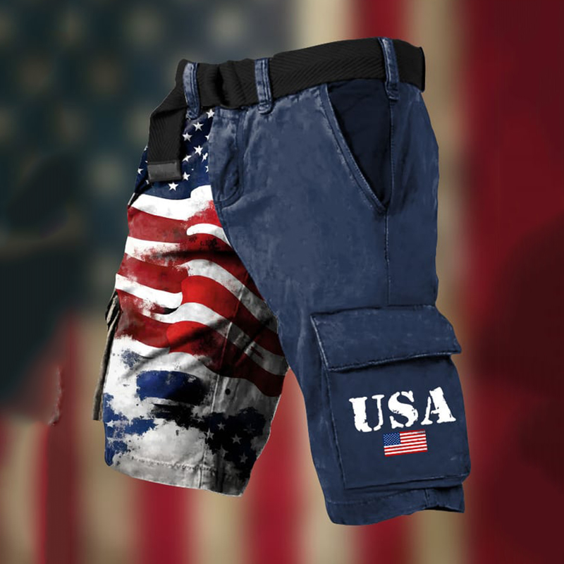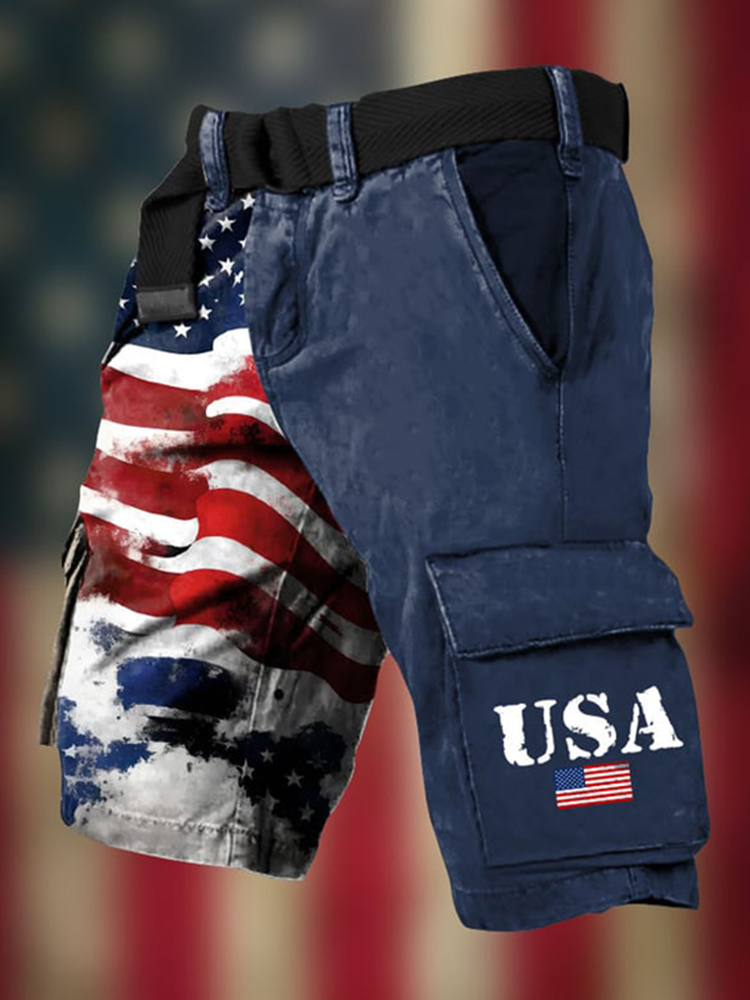 Men's American Flag Print Vintage Cargo Shorts