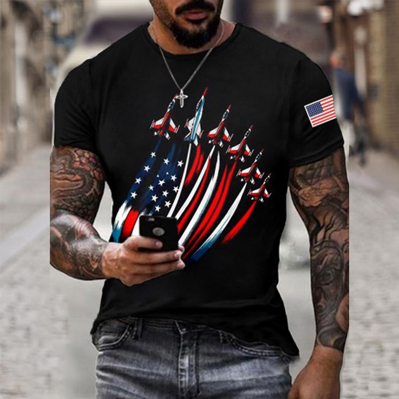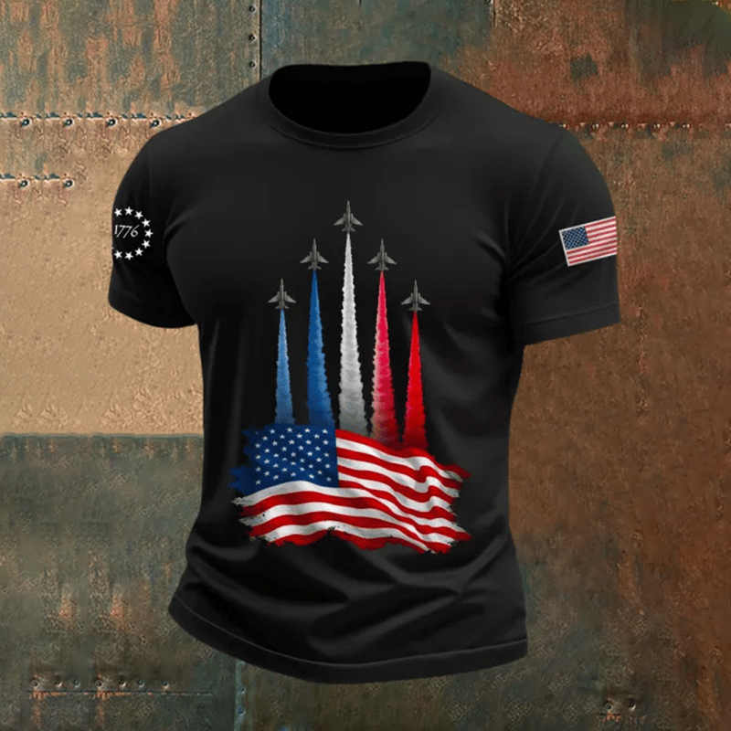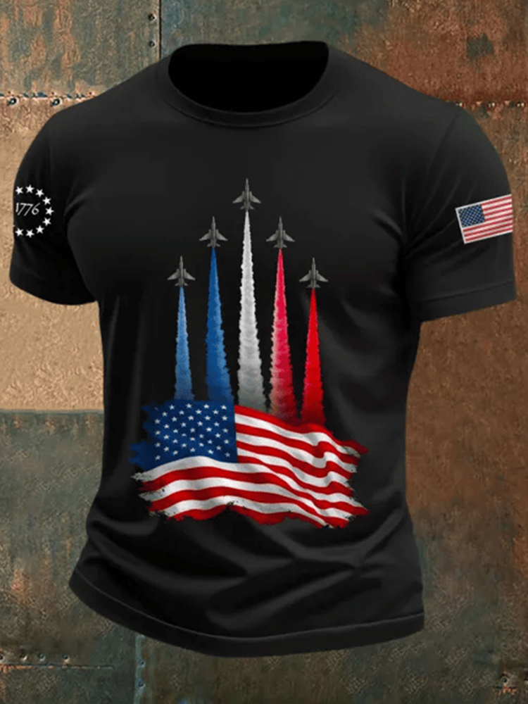 Men's Retro Independence Day Airplane Print T-shirt