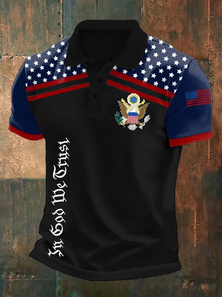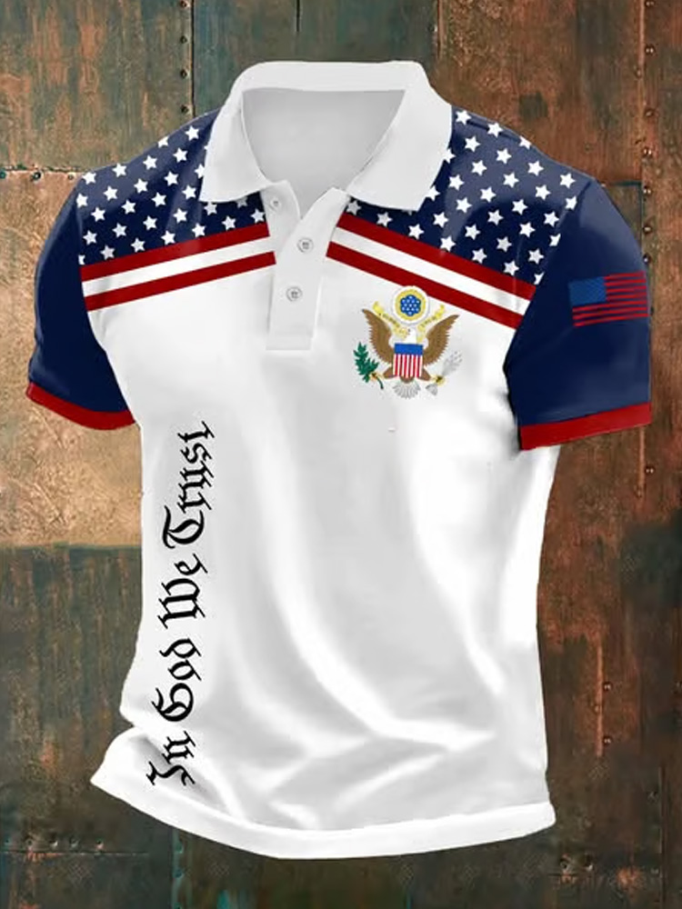 Men's Retro Independence Day In God We Trust Print Polo Shirt