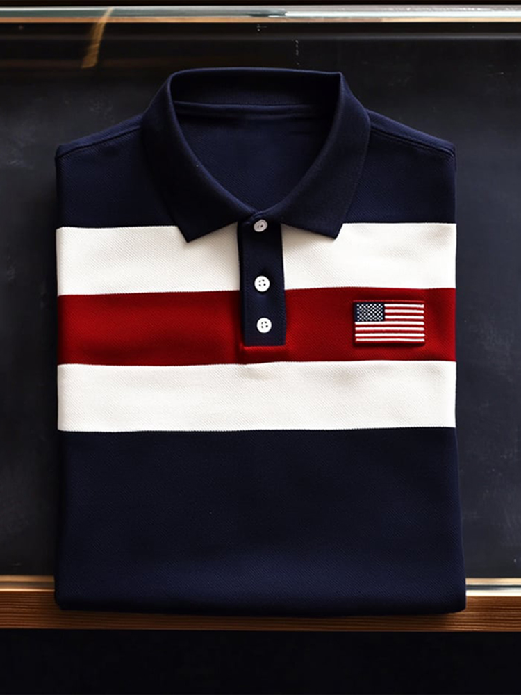 Men's Independence Day Flag Colorblock Short Sleeve Polo Shirt