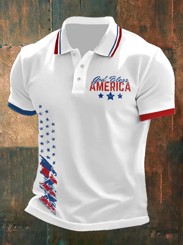 Men's God Bless America Printed Polo Shirt