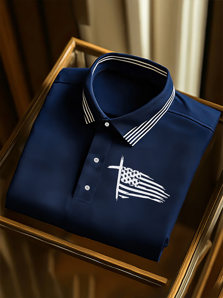 Men's Independence Day Flag Cross Polo Shirt