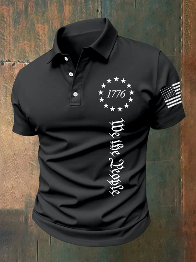 Men's USA Flag We The People Printed Holiday Casual Polo Shirt