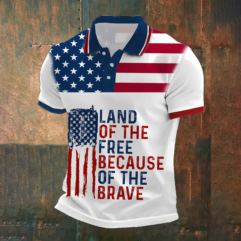 Men's Land Of The Free Because Of The Brave Printed Polo Shirt