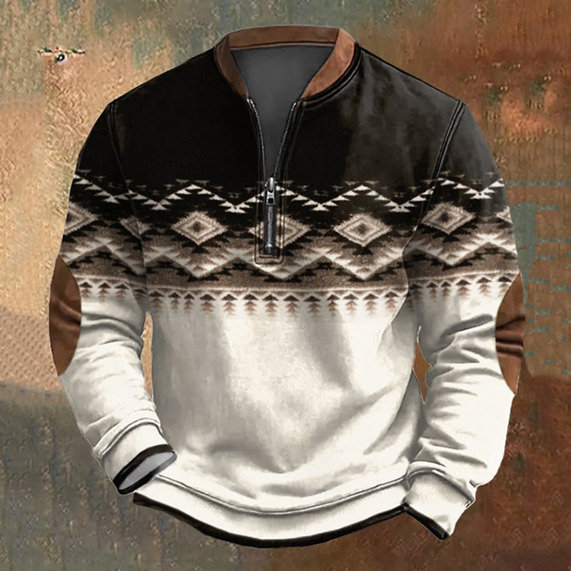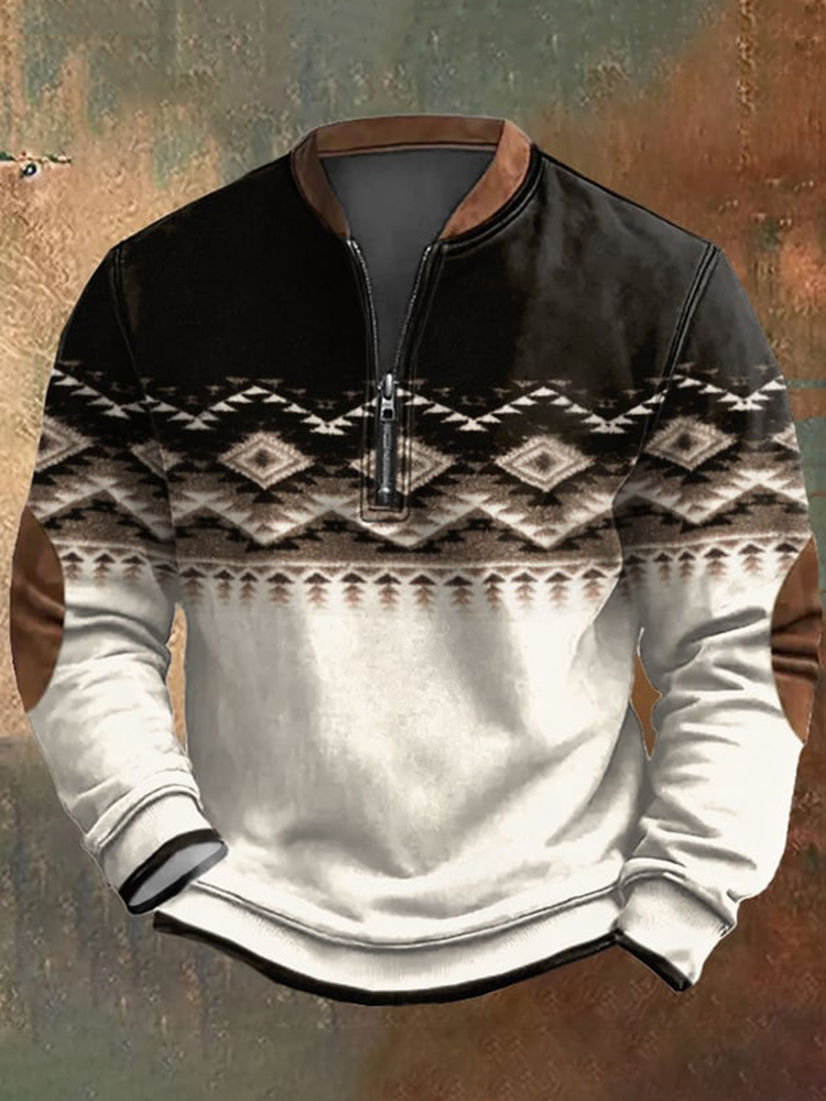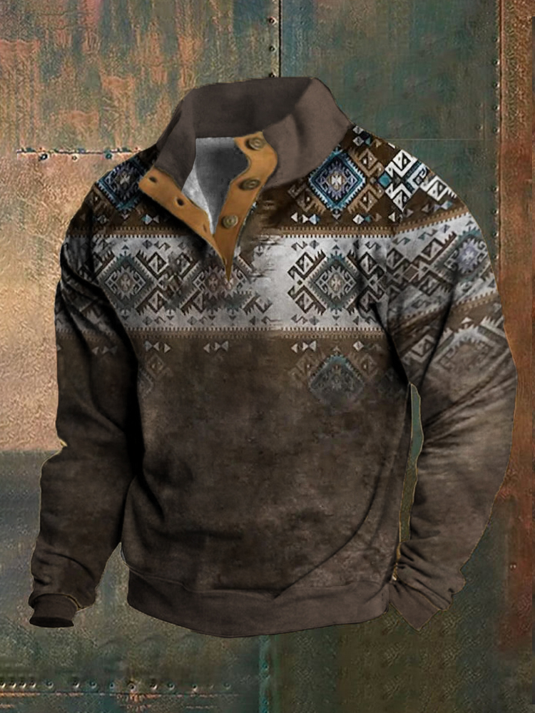 Vintage Western Ethnic Print Men's Standing Collar Sweatshirt