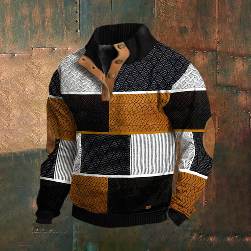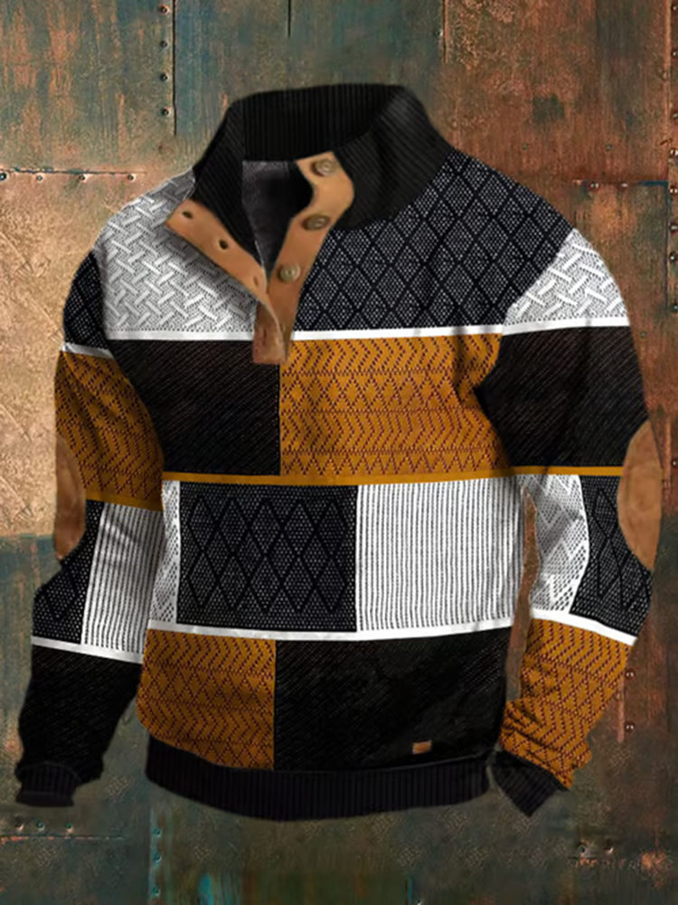 Men's Square Geometric Patchwork Cozy Sweatshirt