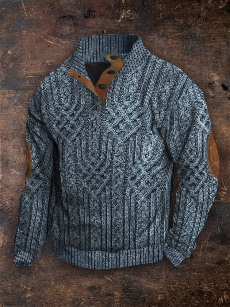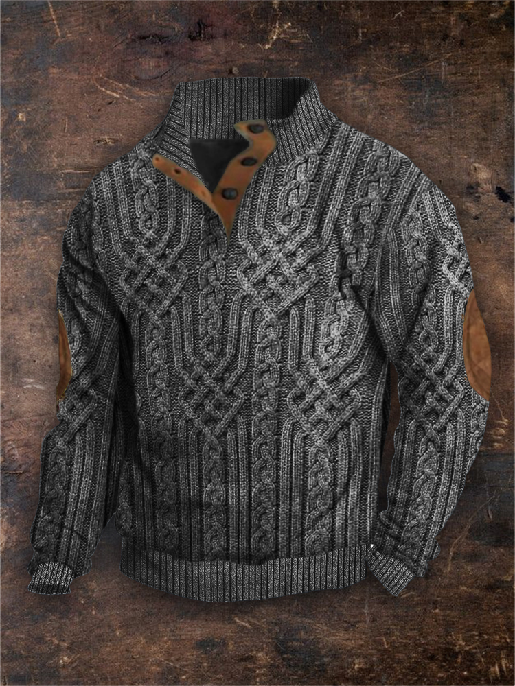 Men's Vintage Celtic Knit Cozy Button Up Pullover
