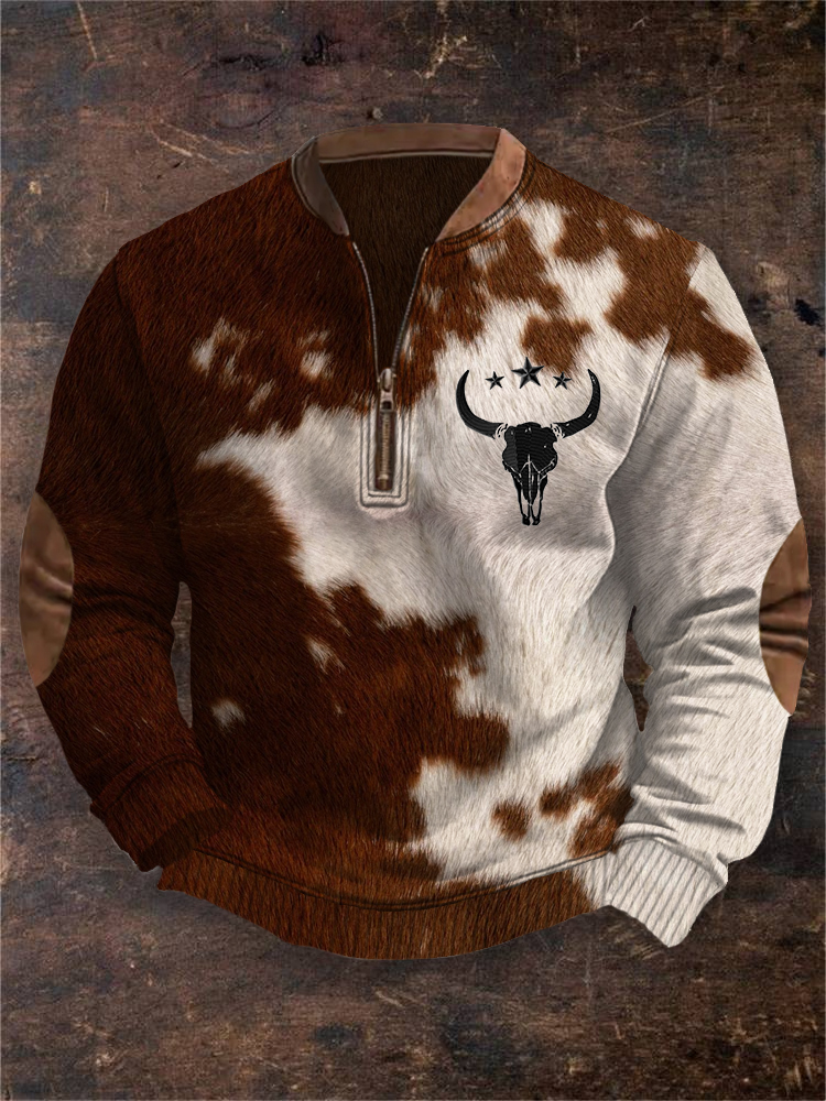 Men's Western Cow Hide Pattern Cozy Sweatshirt