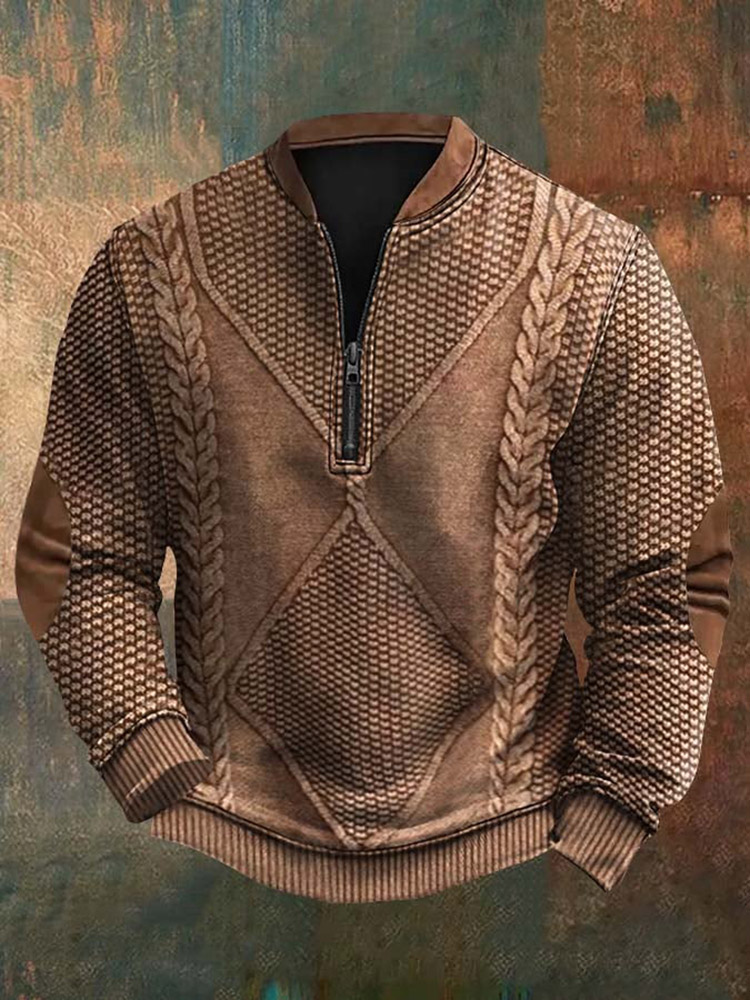 Men's Vintage Knit Print Zip-Up Sweatshirt