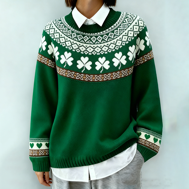 Women's St. Patrick's Day Shamrock Pattern Comfortable And Warm Print Sweater