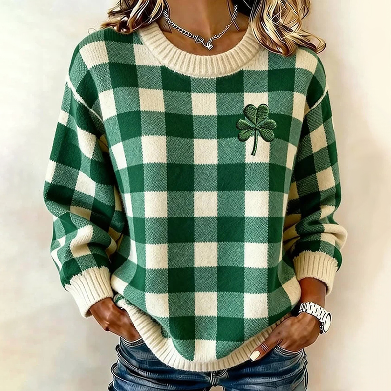 Women's St. Patrick's Day Plaid Shamrock Print Sweatshirt