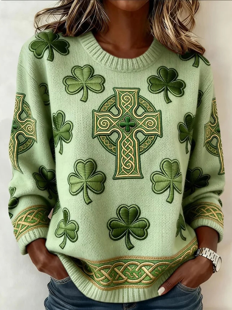 Women's St. Patrick's Day Printed Knit Crew Neck Sweater