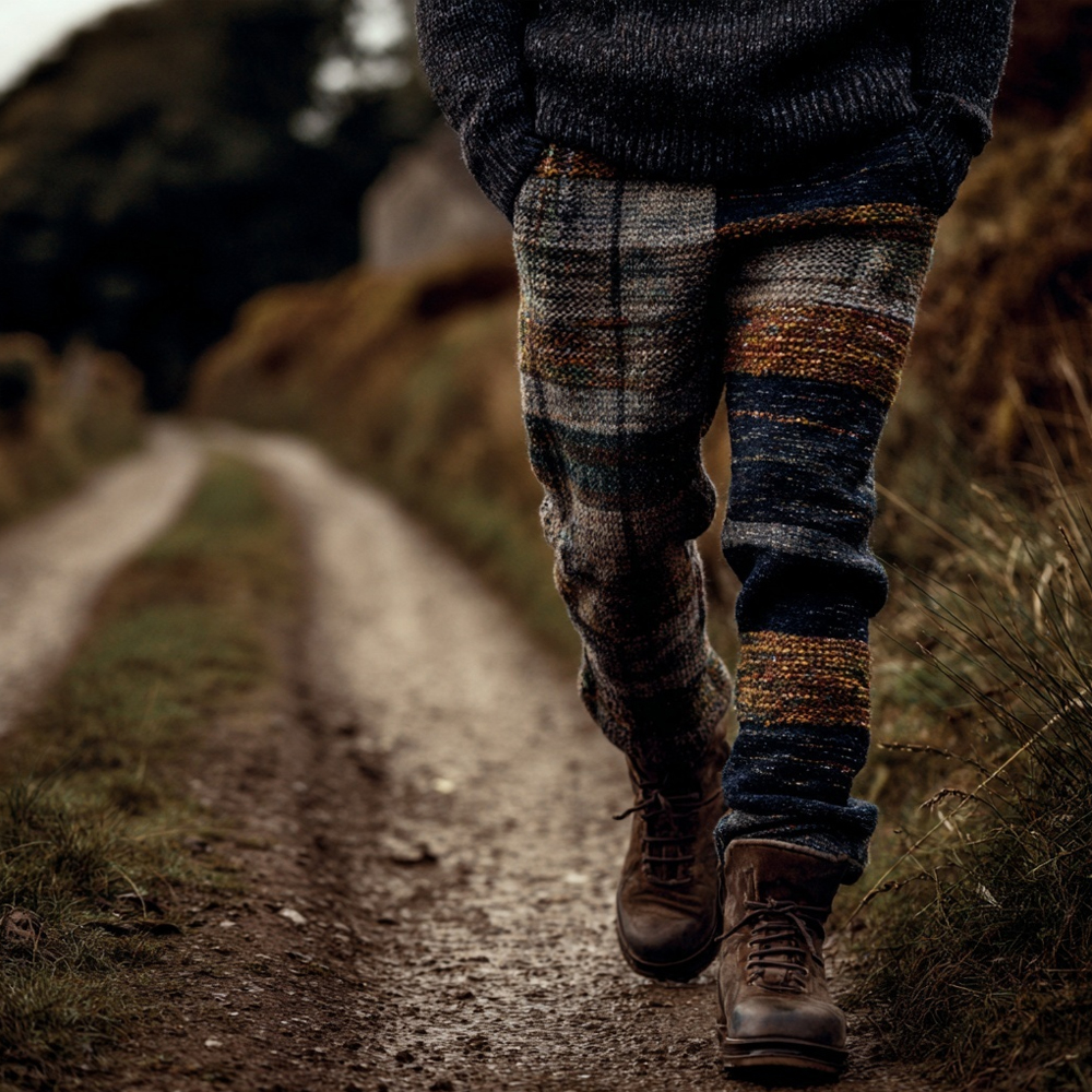Men's Vintage British Tartan Pattern Cozy Knit Pants
