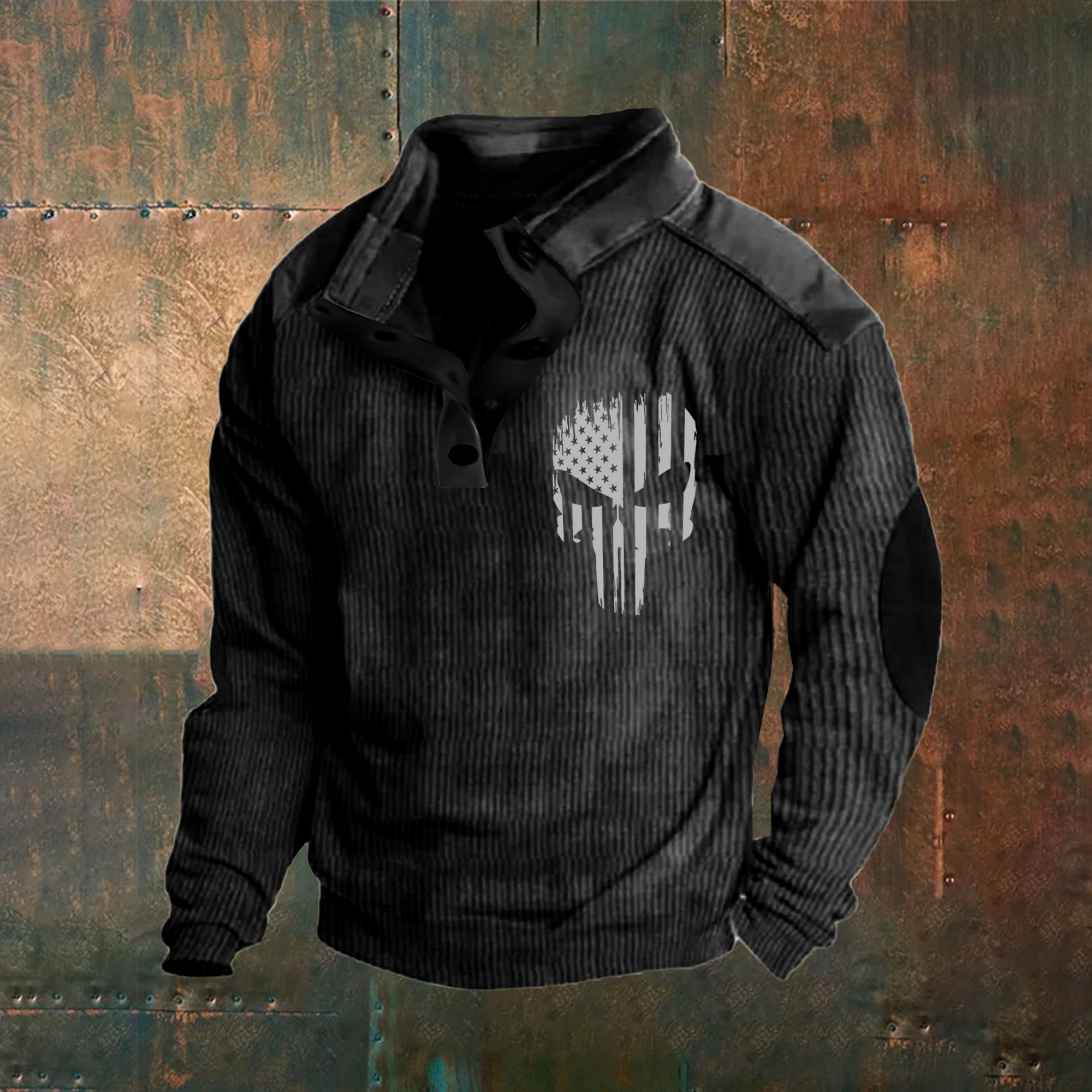 Vintage Flag Skeleton Punishment Graphics Stand Collar Sweatshirt