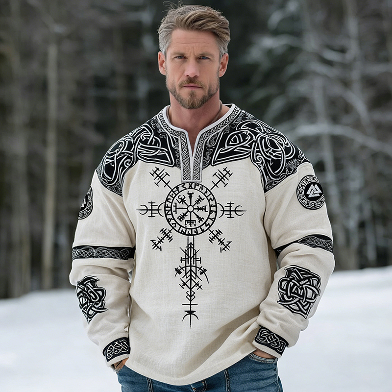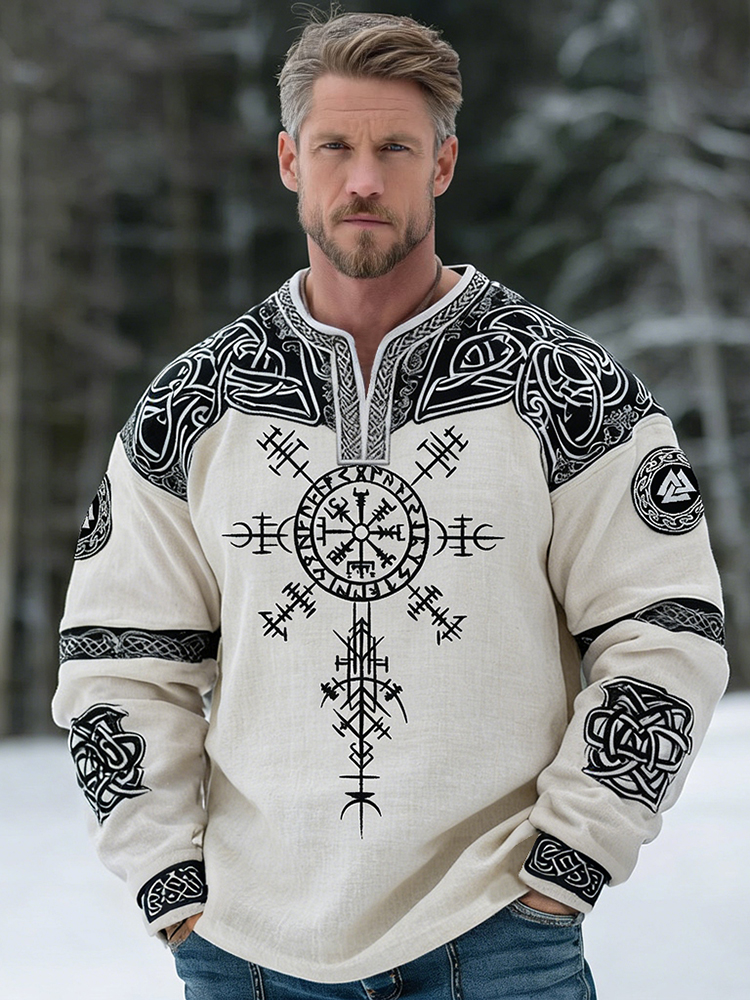 Men's Retro Viking Vegvisir Celtic Graphic Print Cotton-linen Blend Shirt