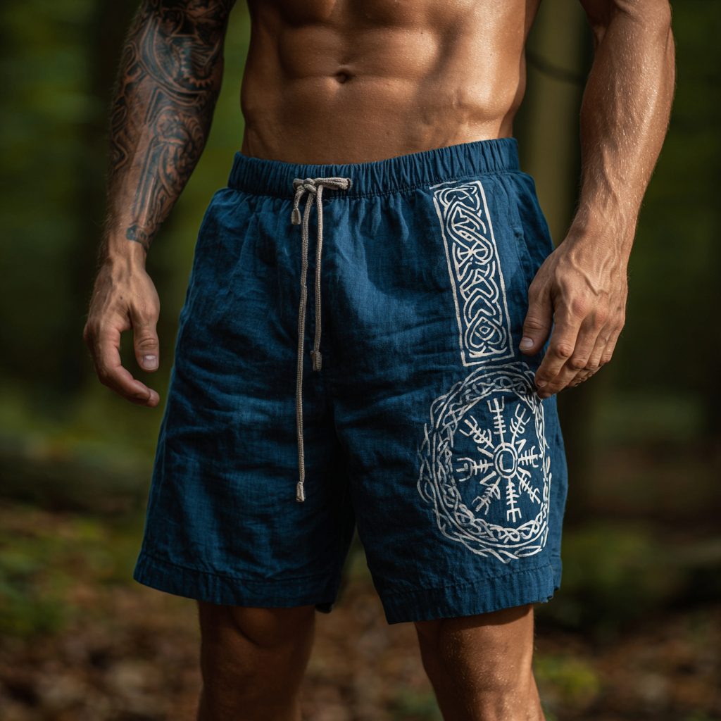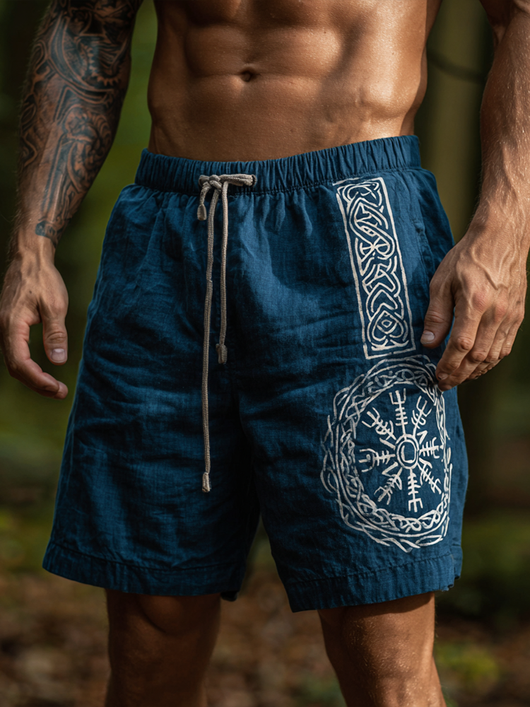 Vintage Viking Celtic Knot Men's Casual Linen Shorts