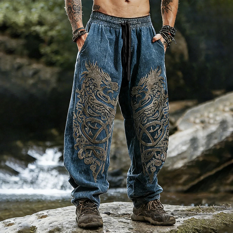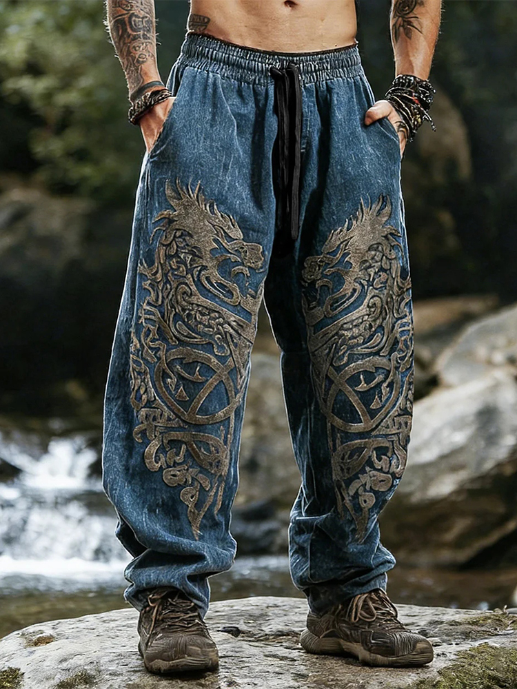 Men's Vintage Viking Dragon Totem Celtic Linen Pants