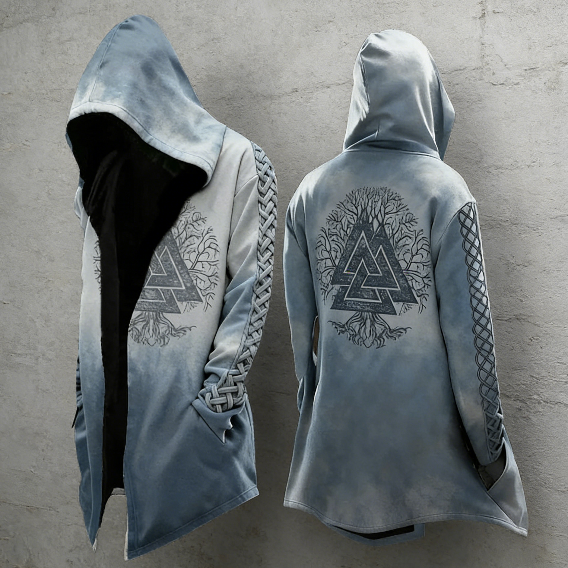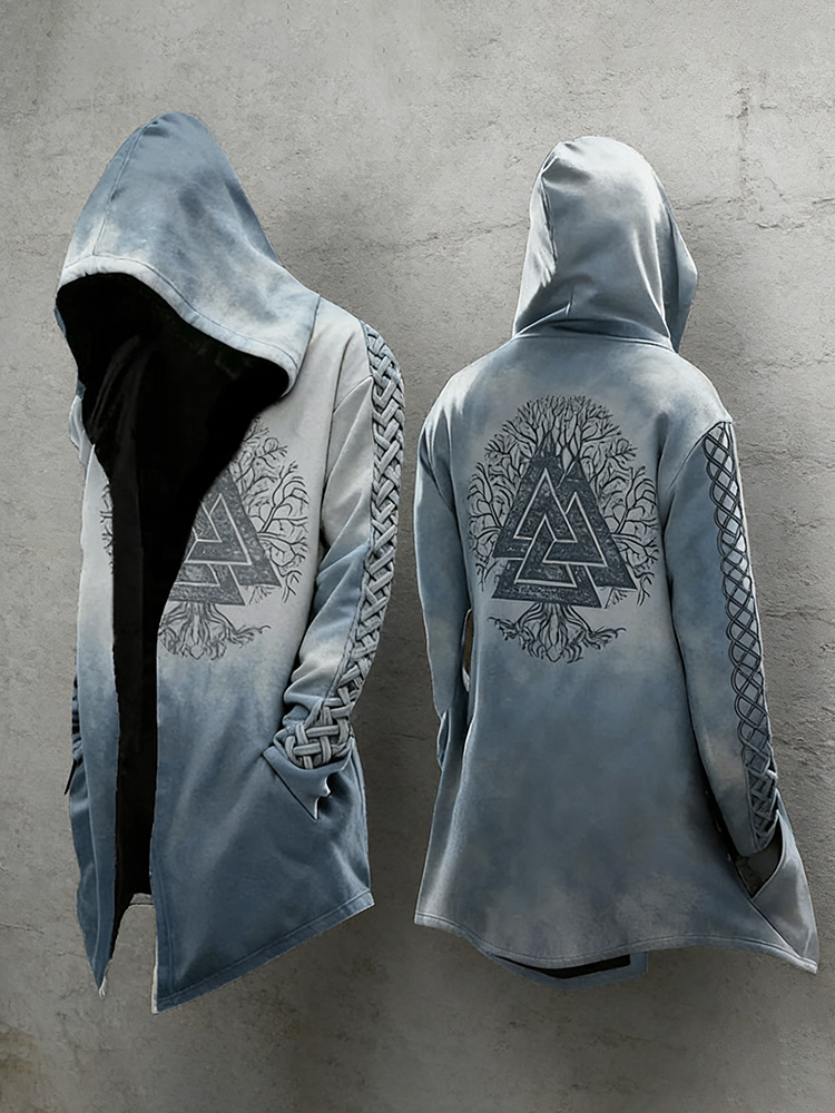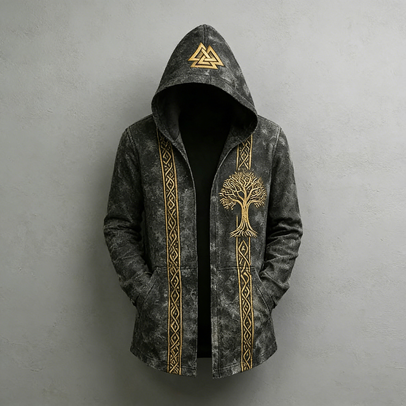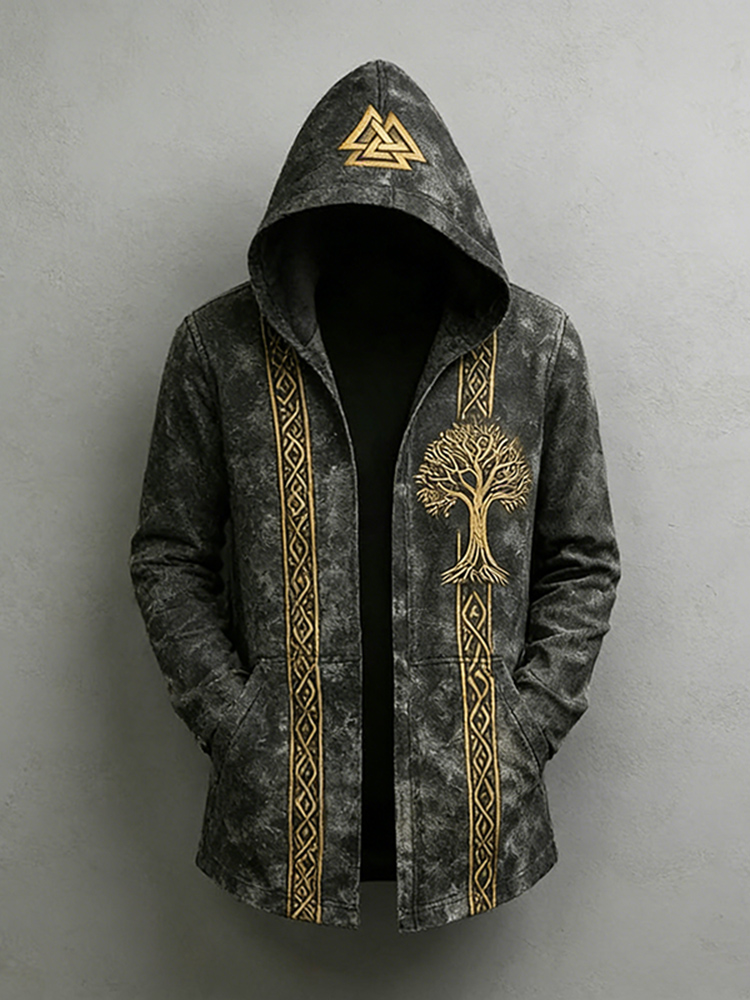 Men's Vintage Viking Celtic Tree Of Life Art Hooded Cardigan