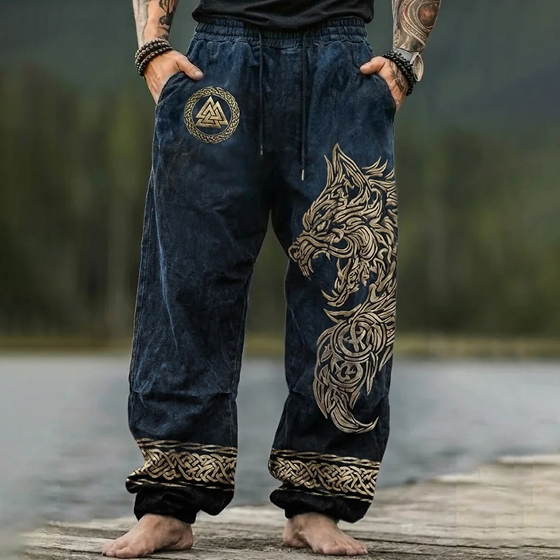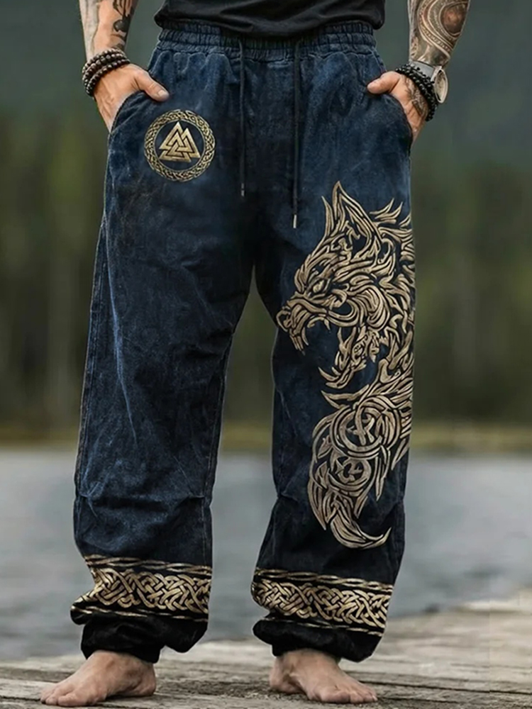 Men's Viking Wolf Celtic Valknut Totem Nordic Retro Pants