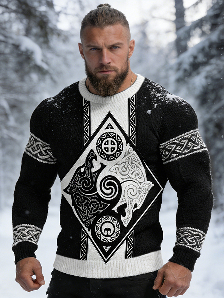 Men's Viking Wolf Celtic Knot Cozy Knit Sweater
