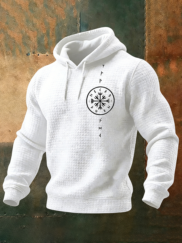 Men's Retro Viking Rune Print Casual Hooded Sweatshirt