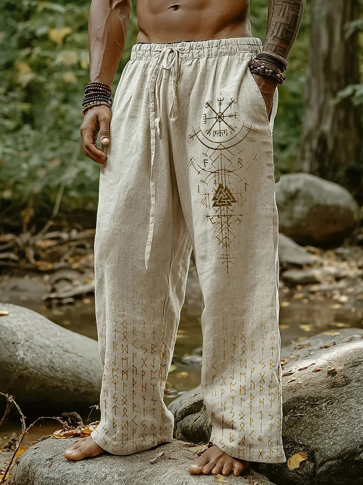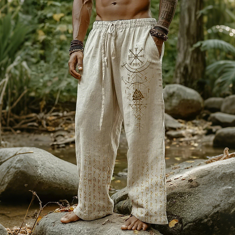Men's Viking Vintage Nordic Rune Totem Art Linen Pants