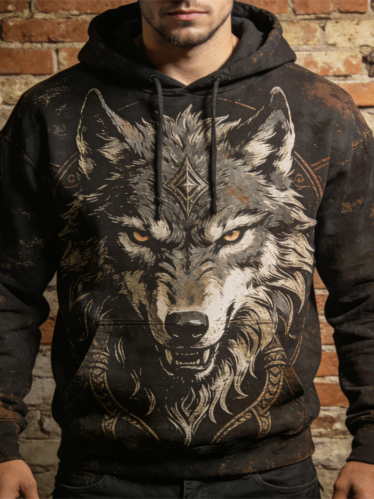 Viking Wolf Totem Vintage Men's Hooded Sweatshirt